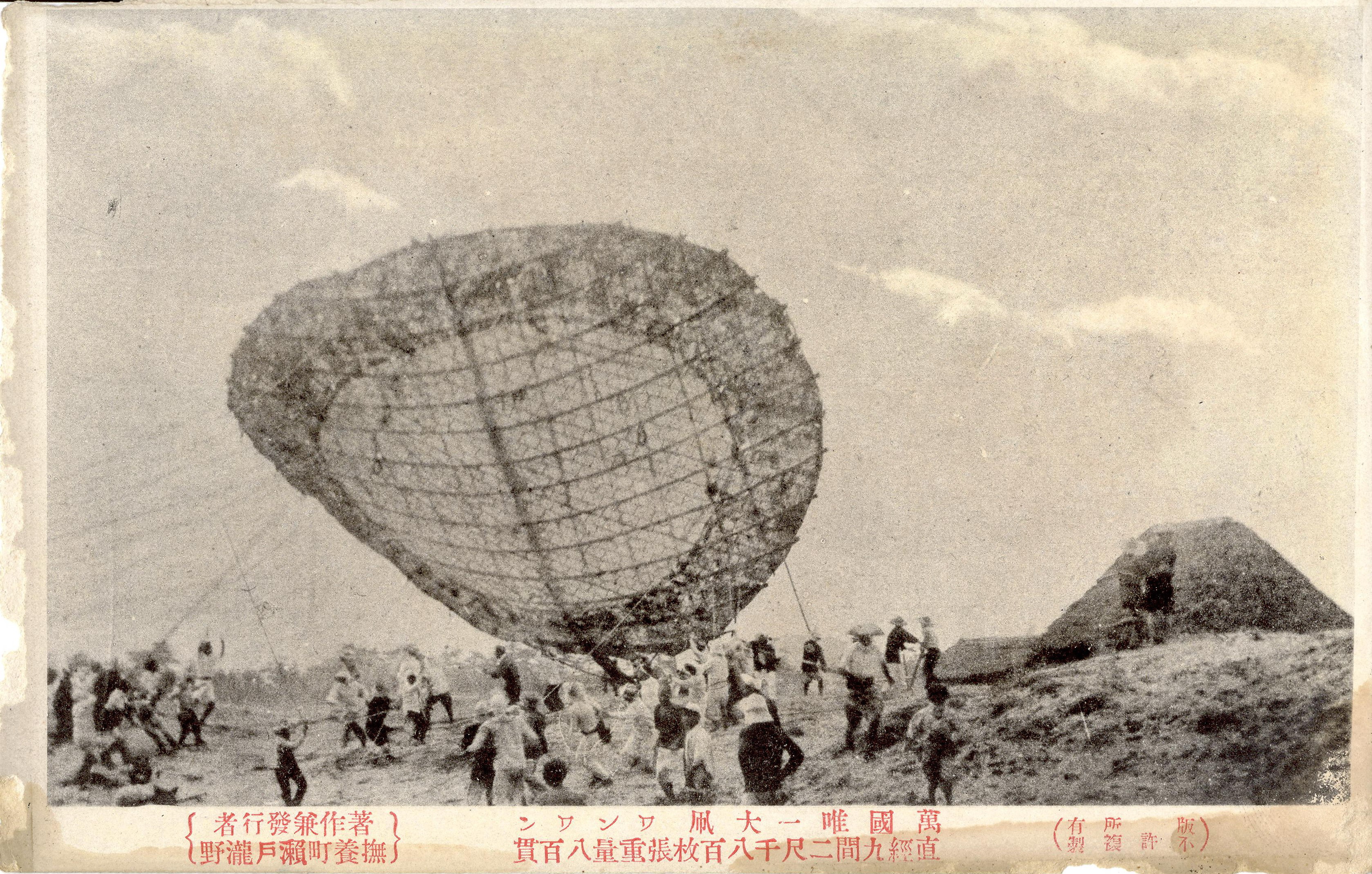 満国唯一大凧 ワンワン 直径九間二尺千八百枚張重量八百貫