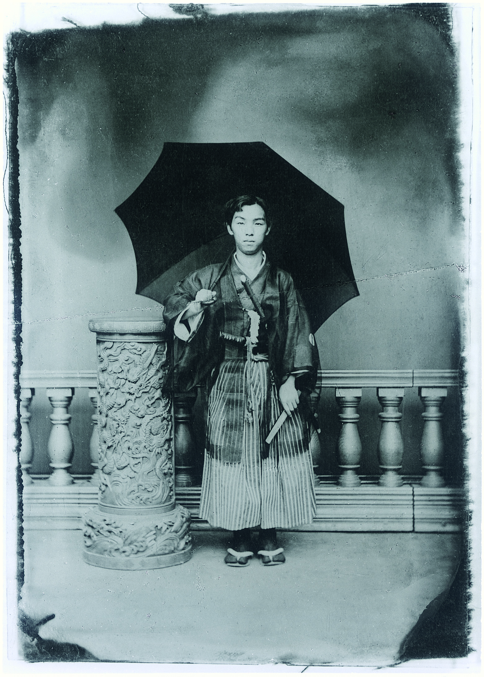 こうもり傘を持って記念写真