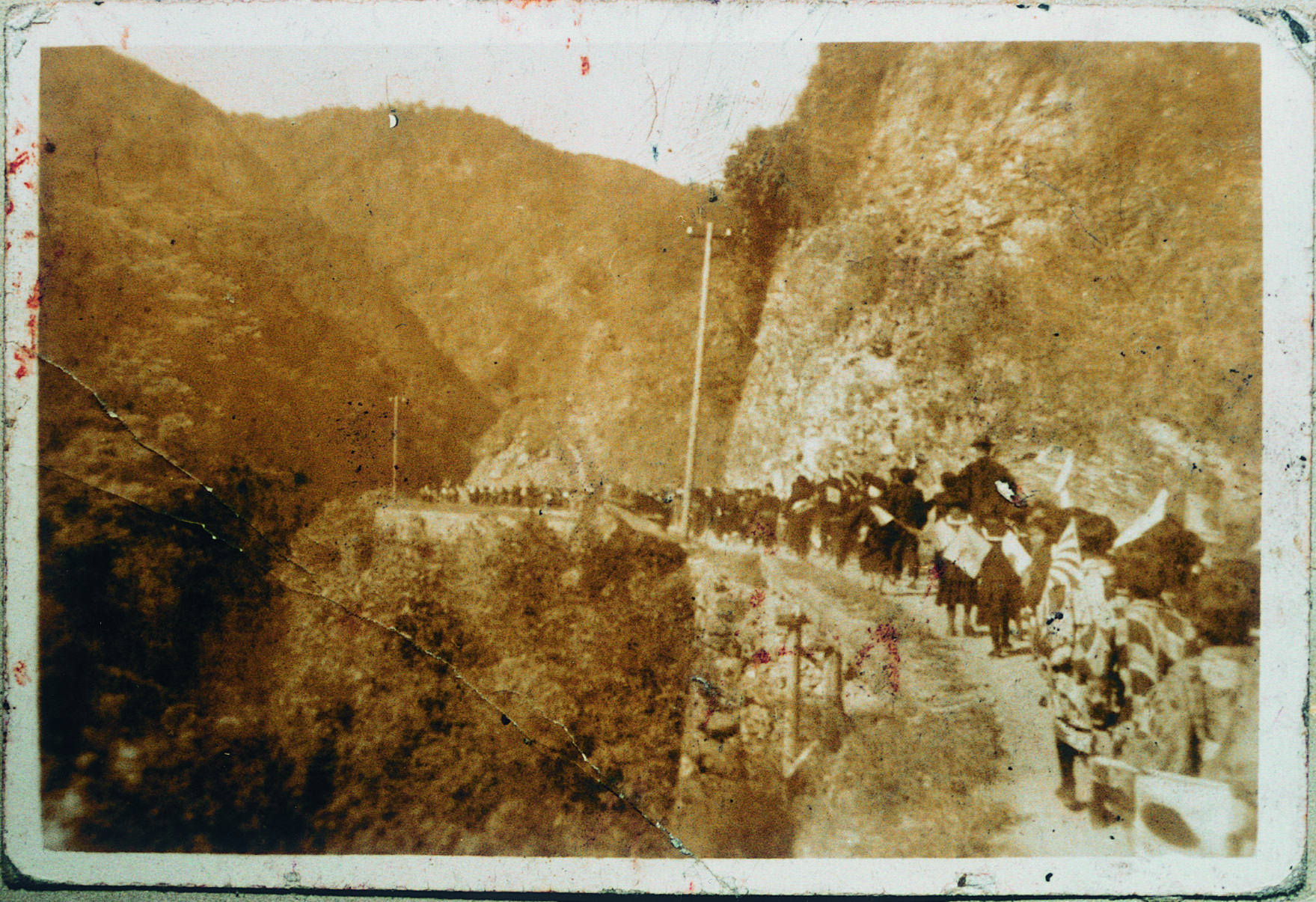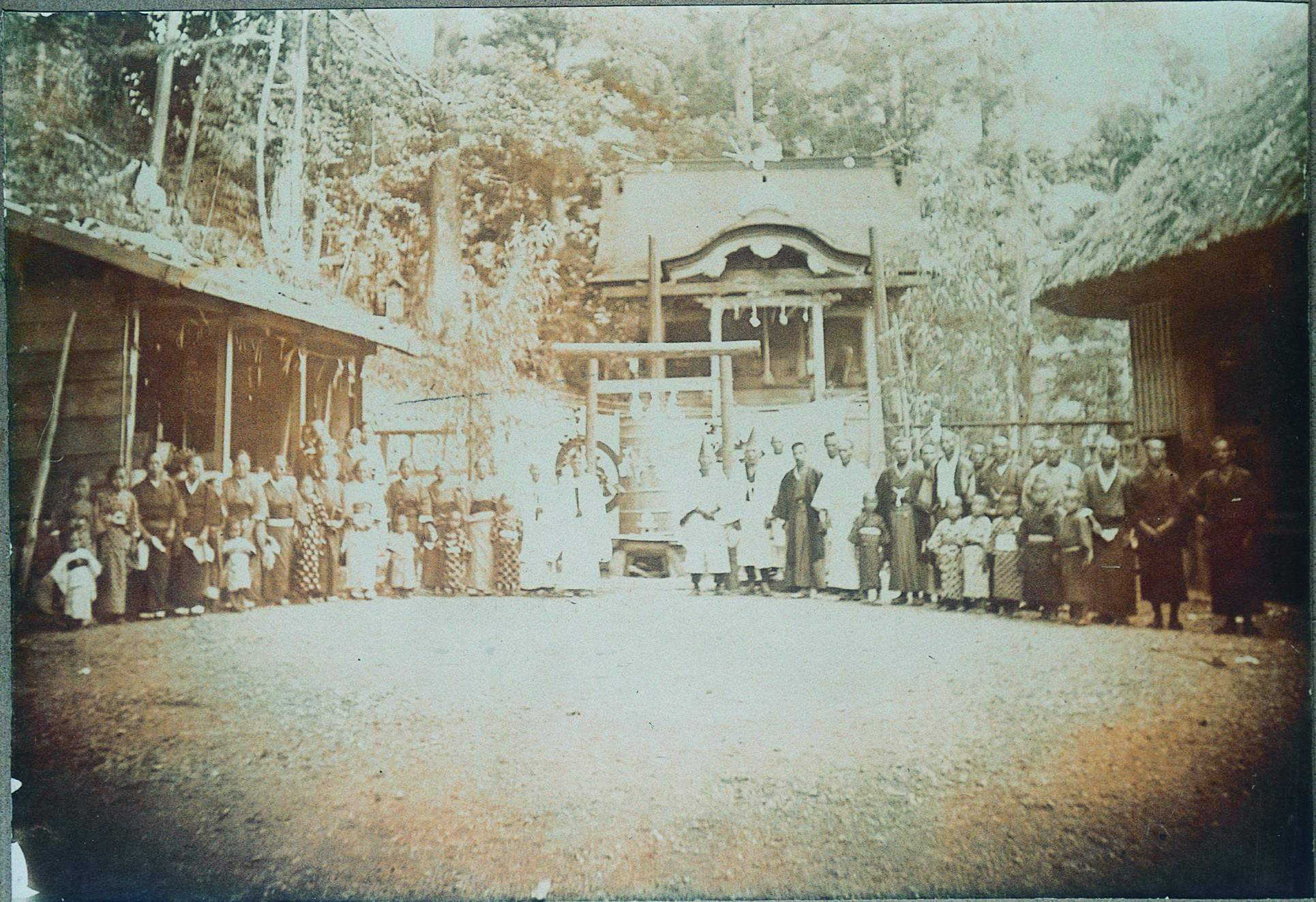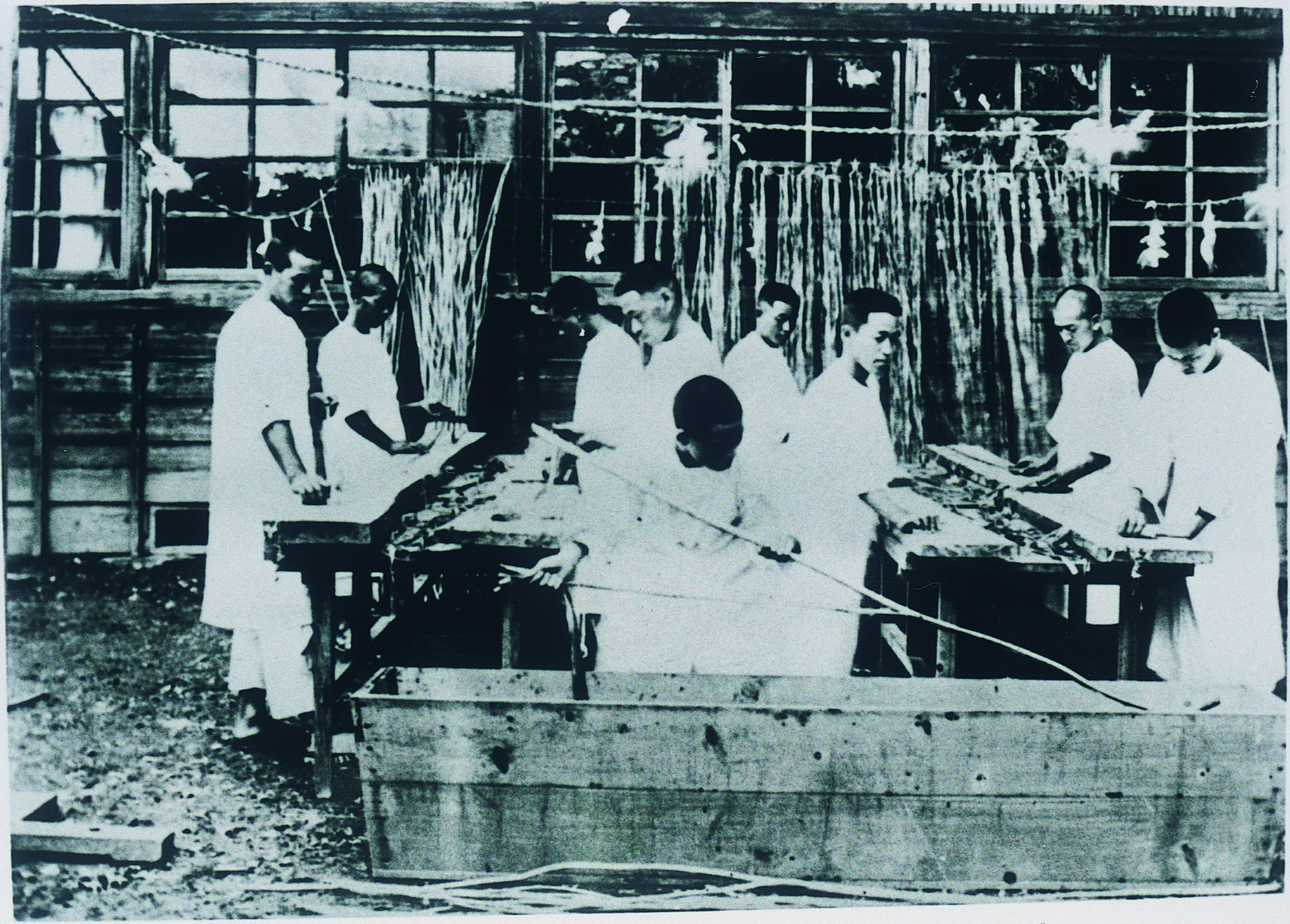 剣山開発道路 宿舎での歓迎式(錦谷小が宿舎として使用された)