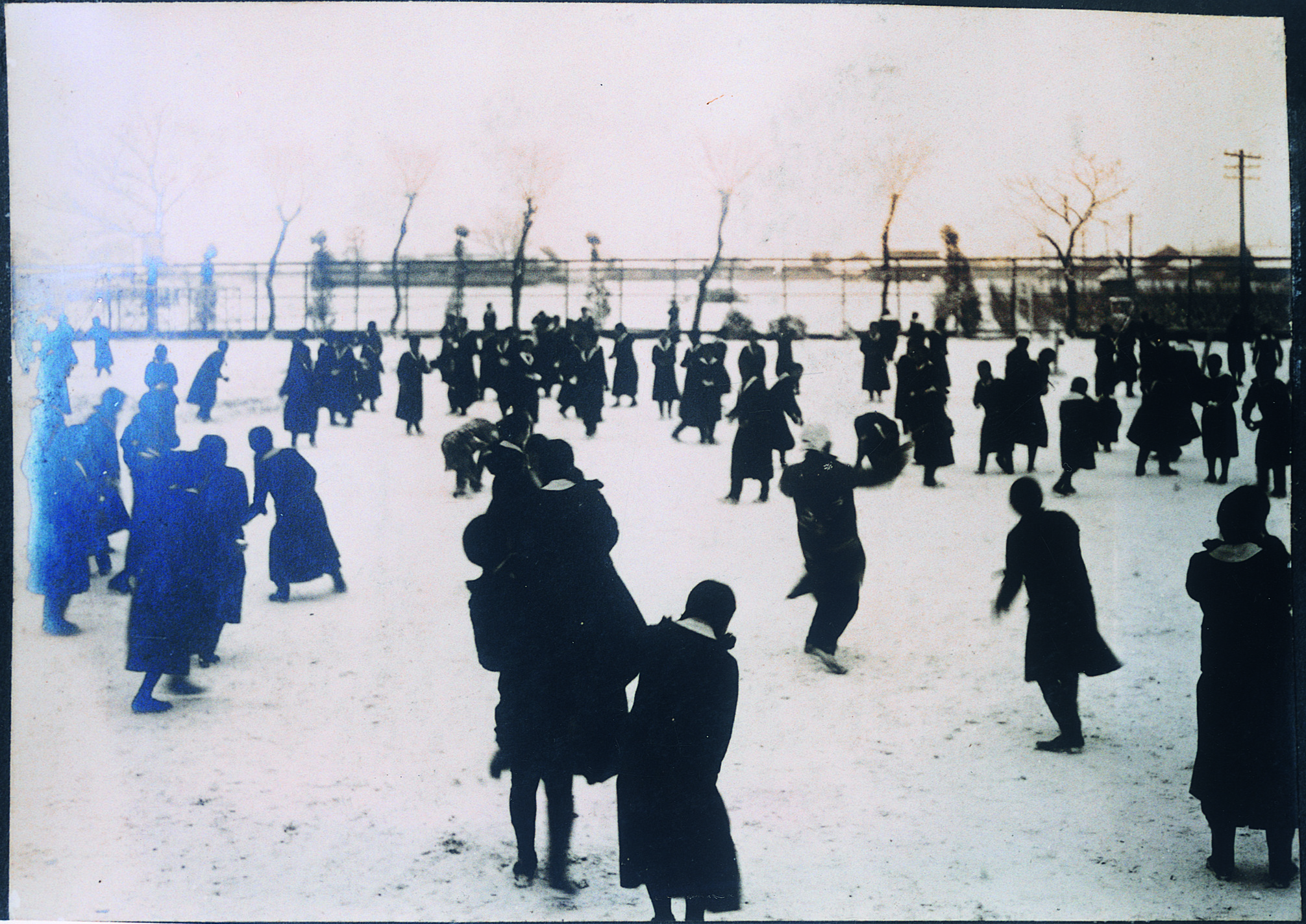 校庭雪合戦