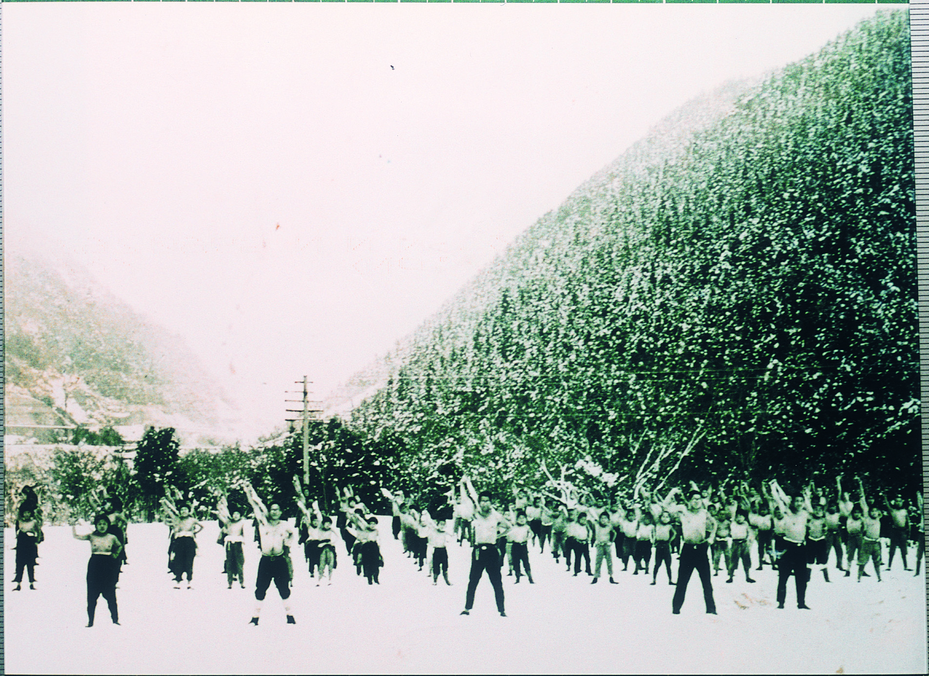 雪の校庭での修練 西宇小学校