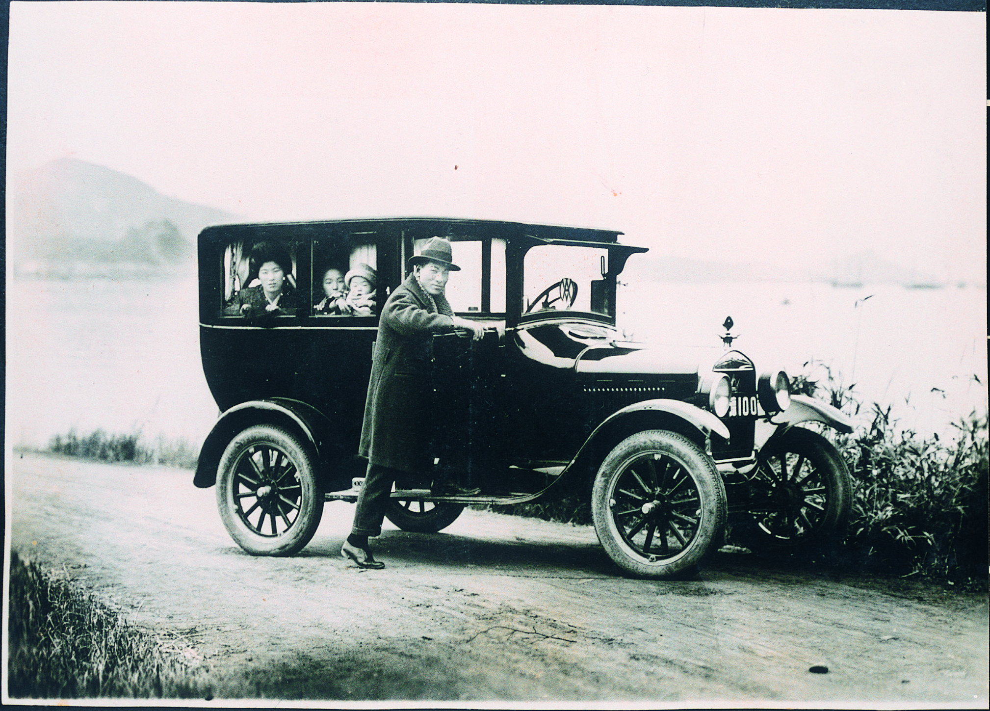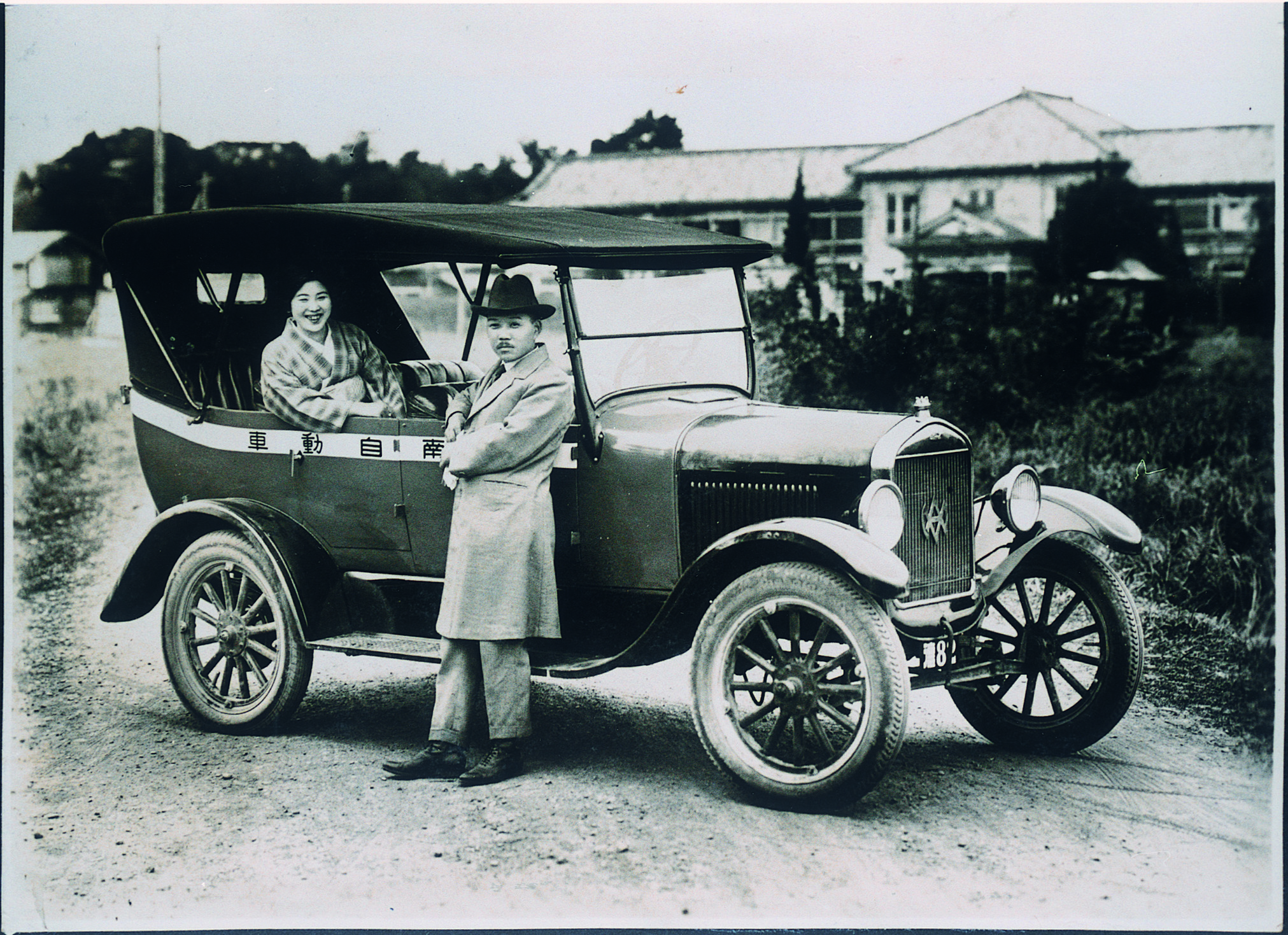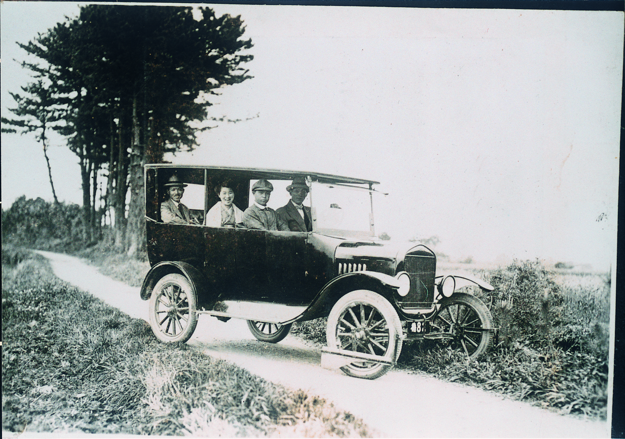 乗用車と記念写真