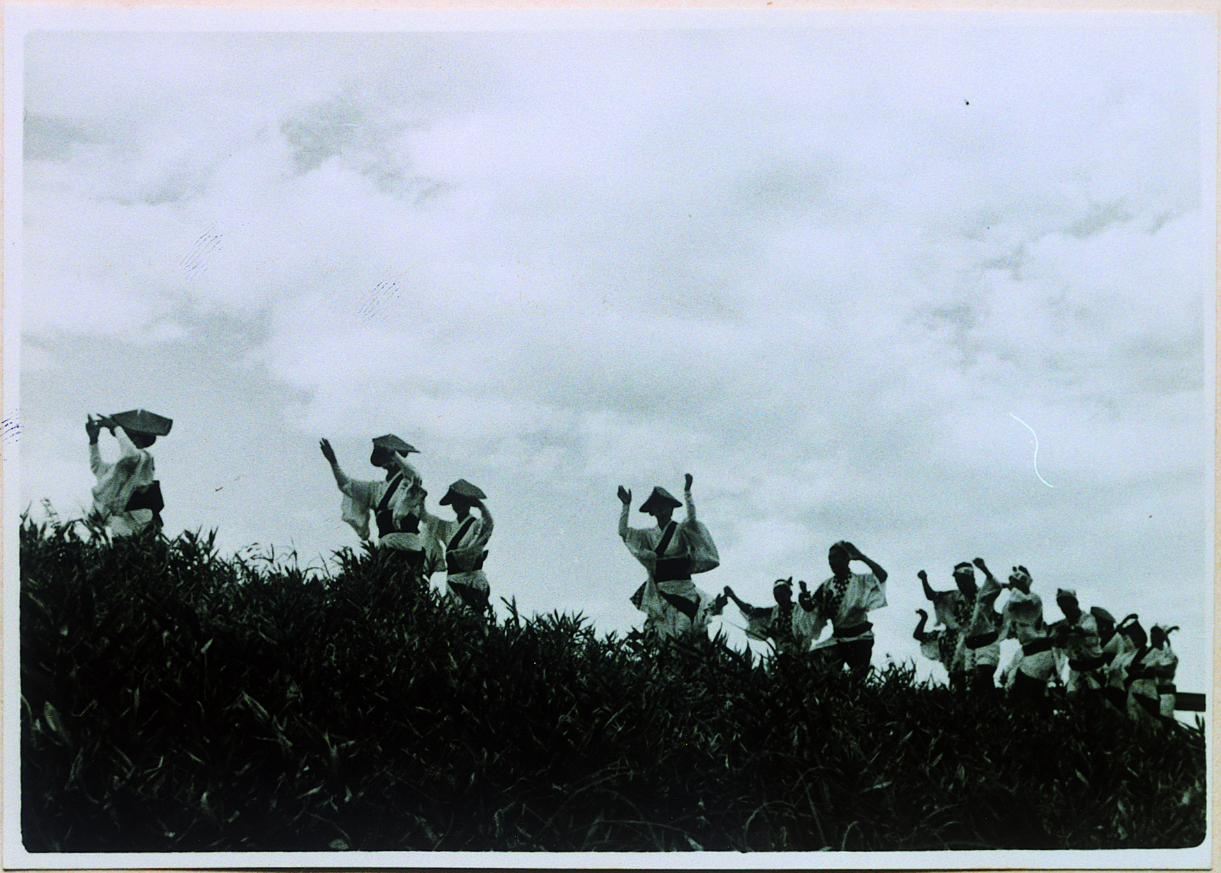 吉野川堤防での阿波踊り(写真家たちが連に頼んで堤防で踊ってもらったモデル写真。普段はここでは踊らない。)