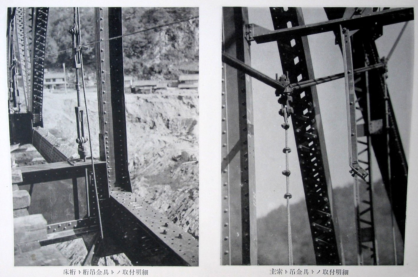 床桁ト桁吊金具トノ取付明細、主索ト吊金具トノ取付明細