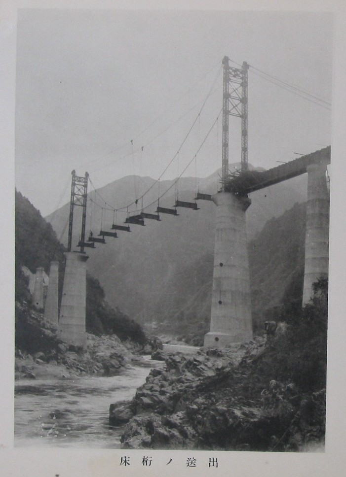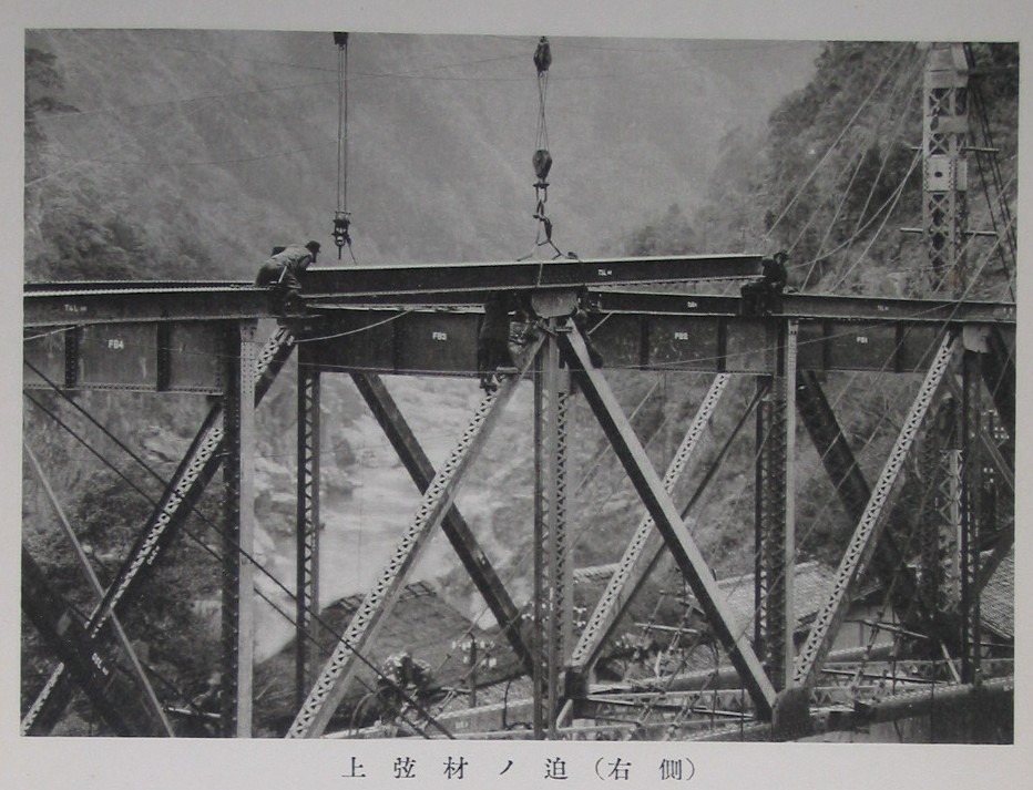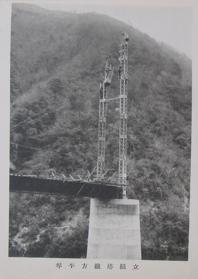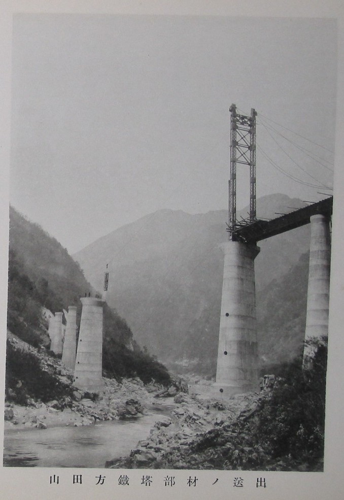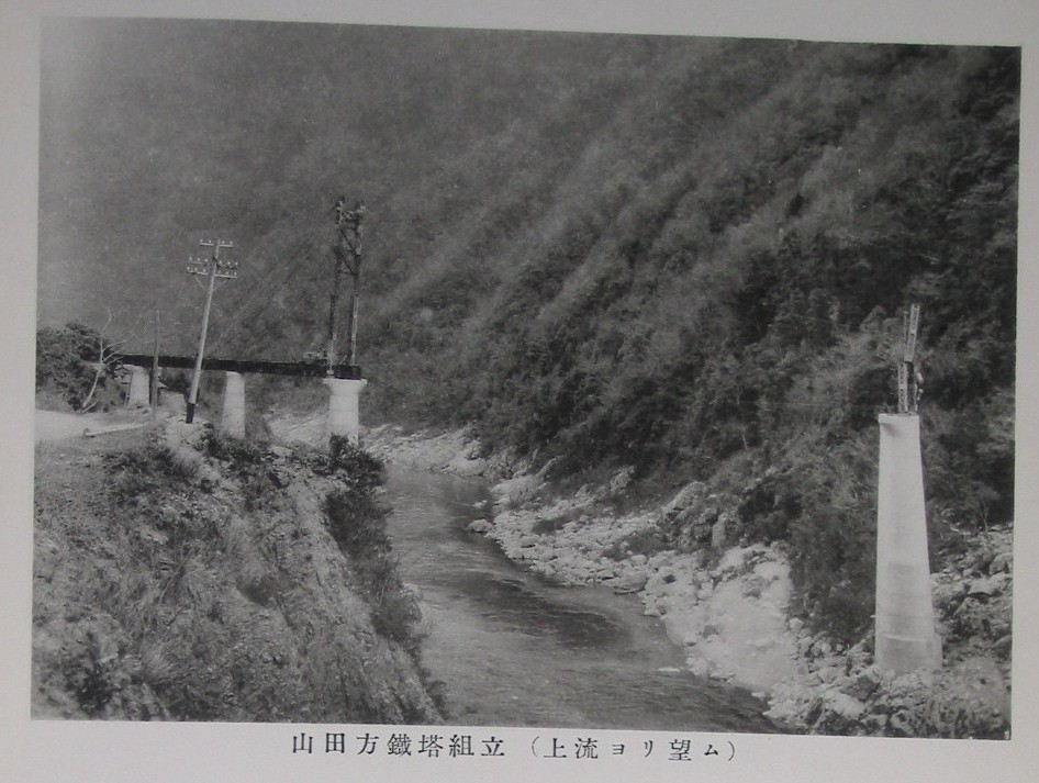 同上(山田方鉄塔組立(下流ヨリ望ム)