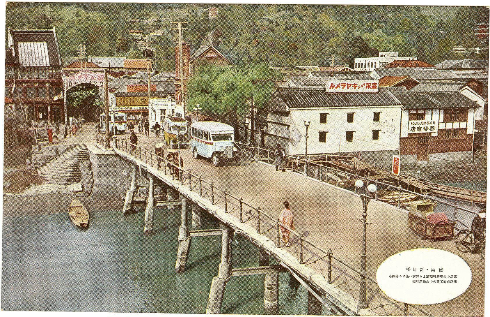 徳島市名所絵葉書 徳島市両国橋