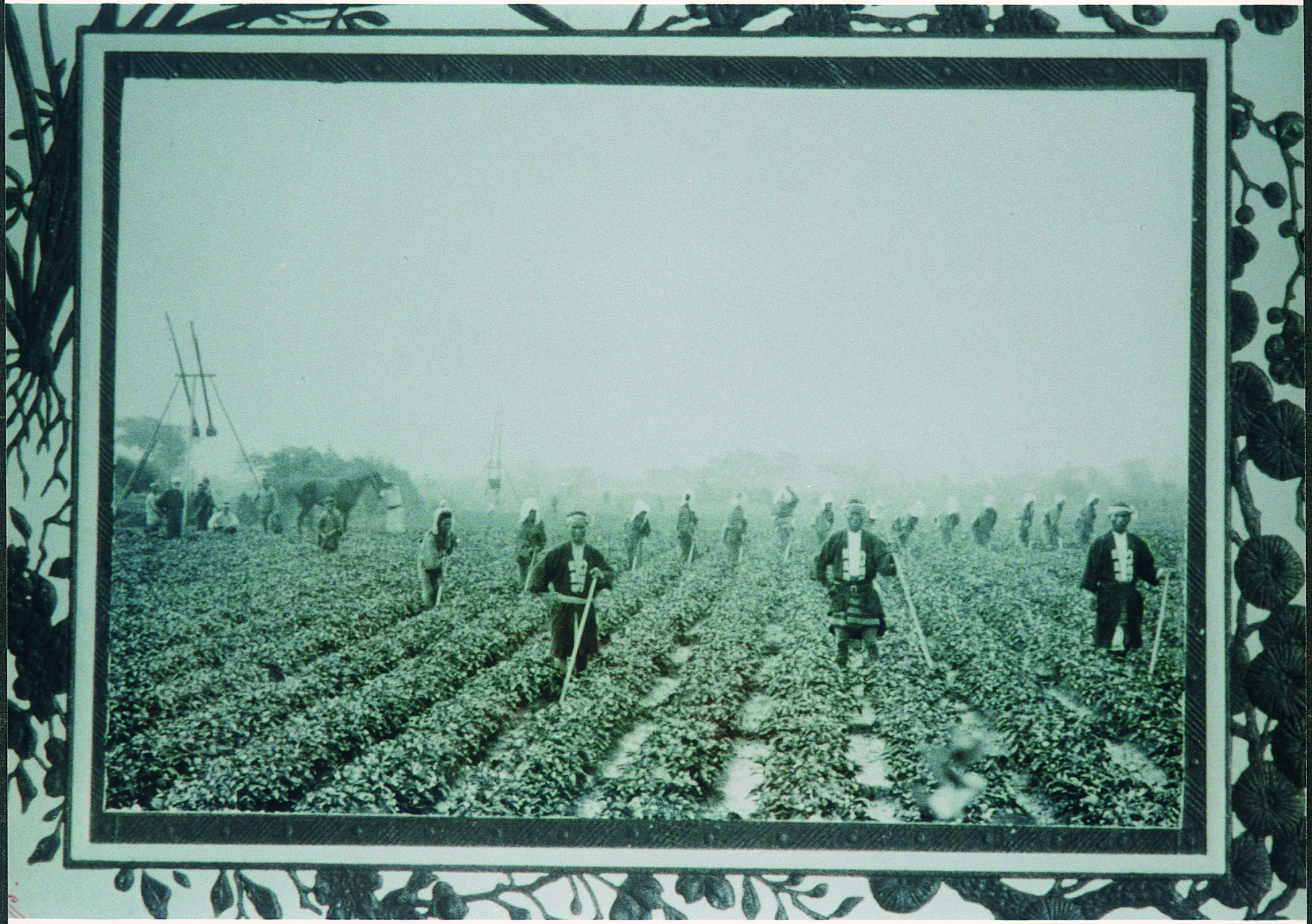 「内田商行藍農場」のはっぴを着て作業する人びと