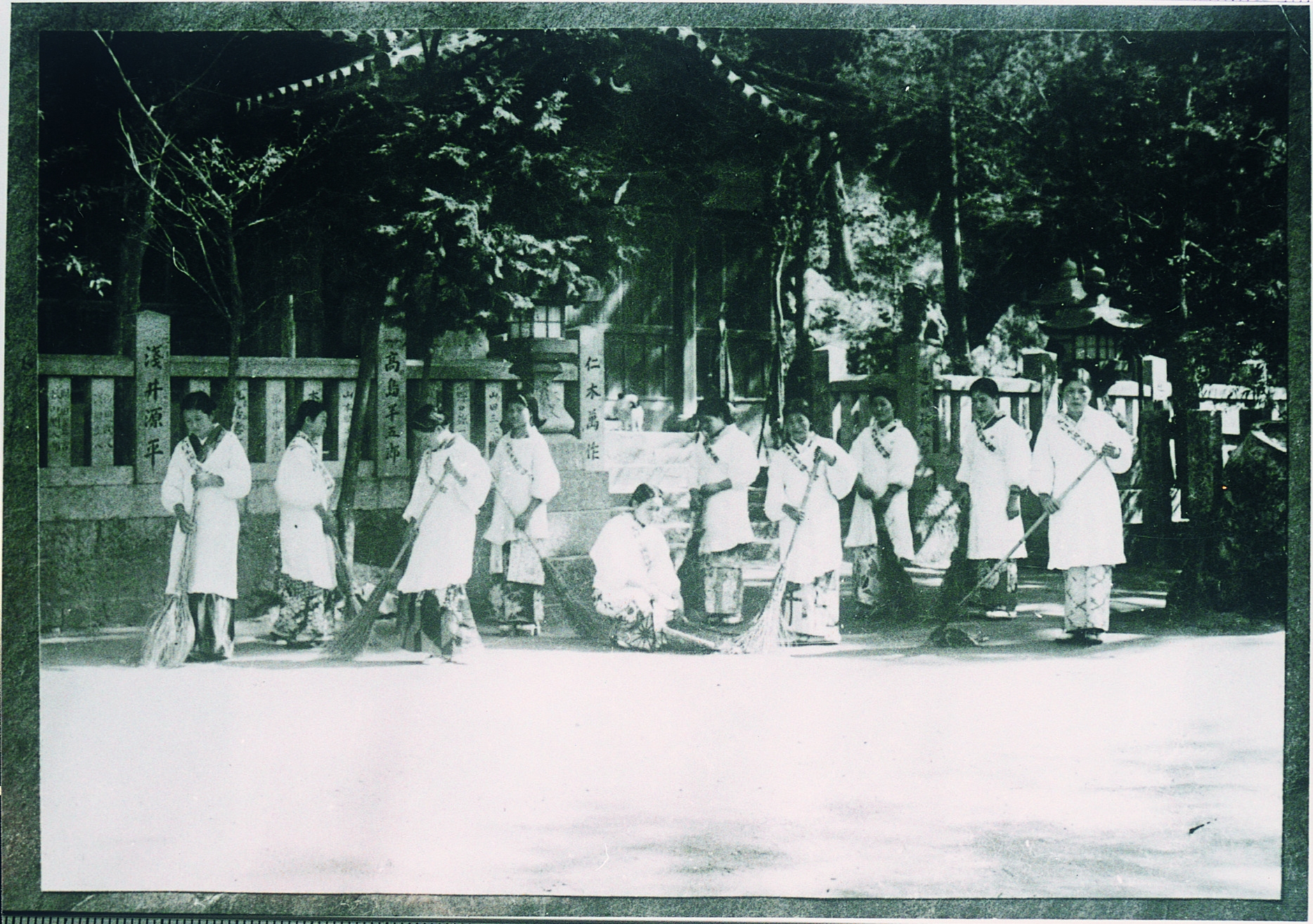 国防婦人会立岩分会の神社清掃奉仕
