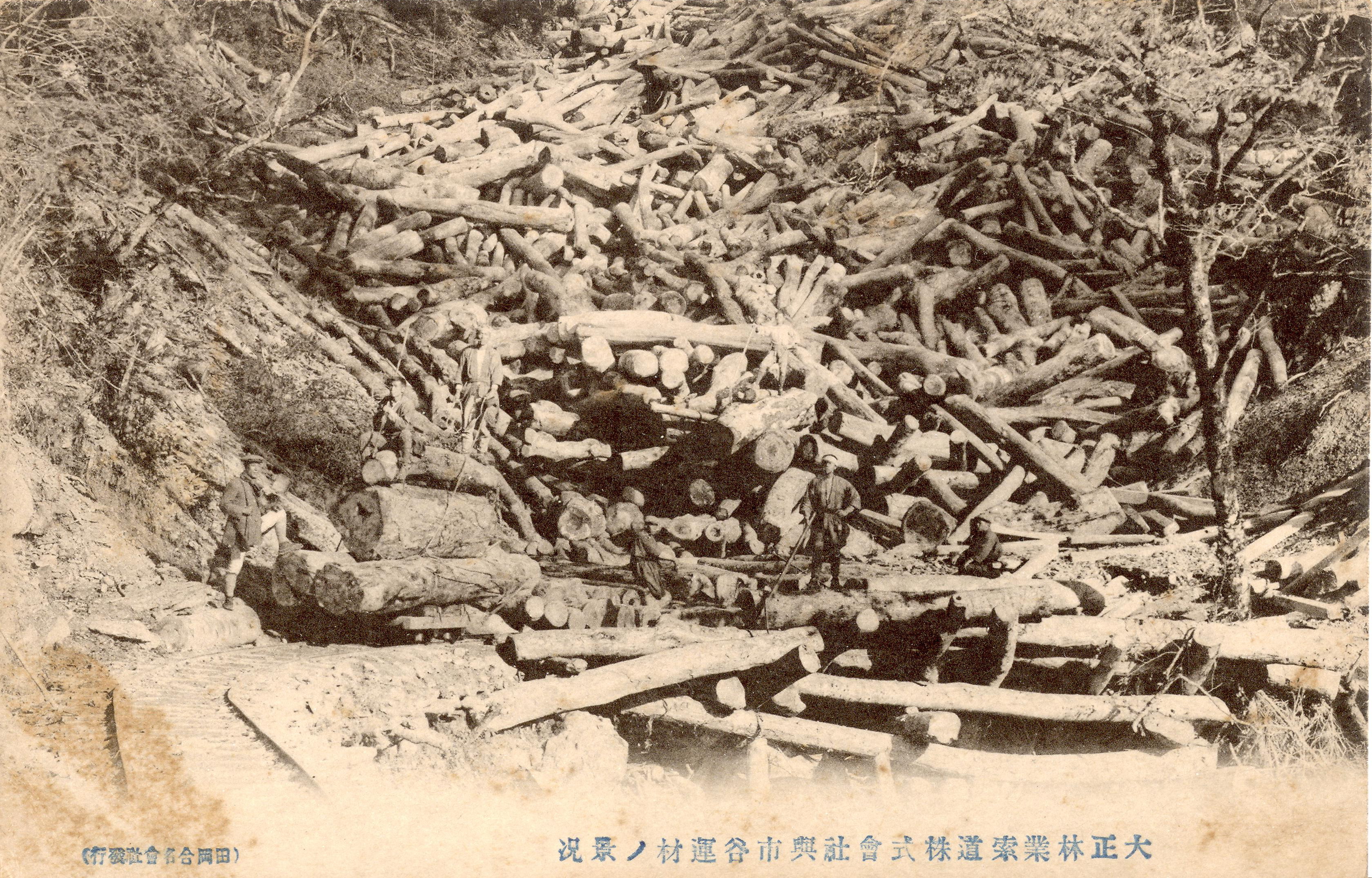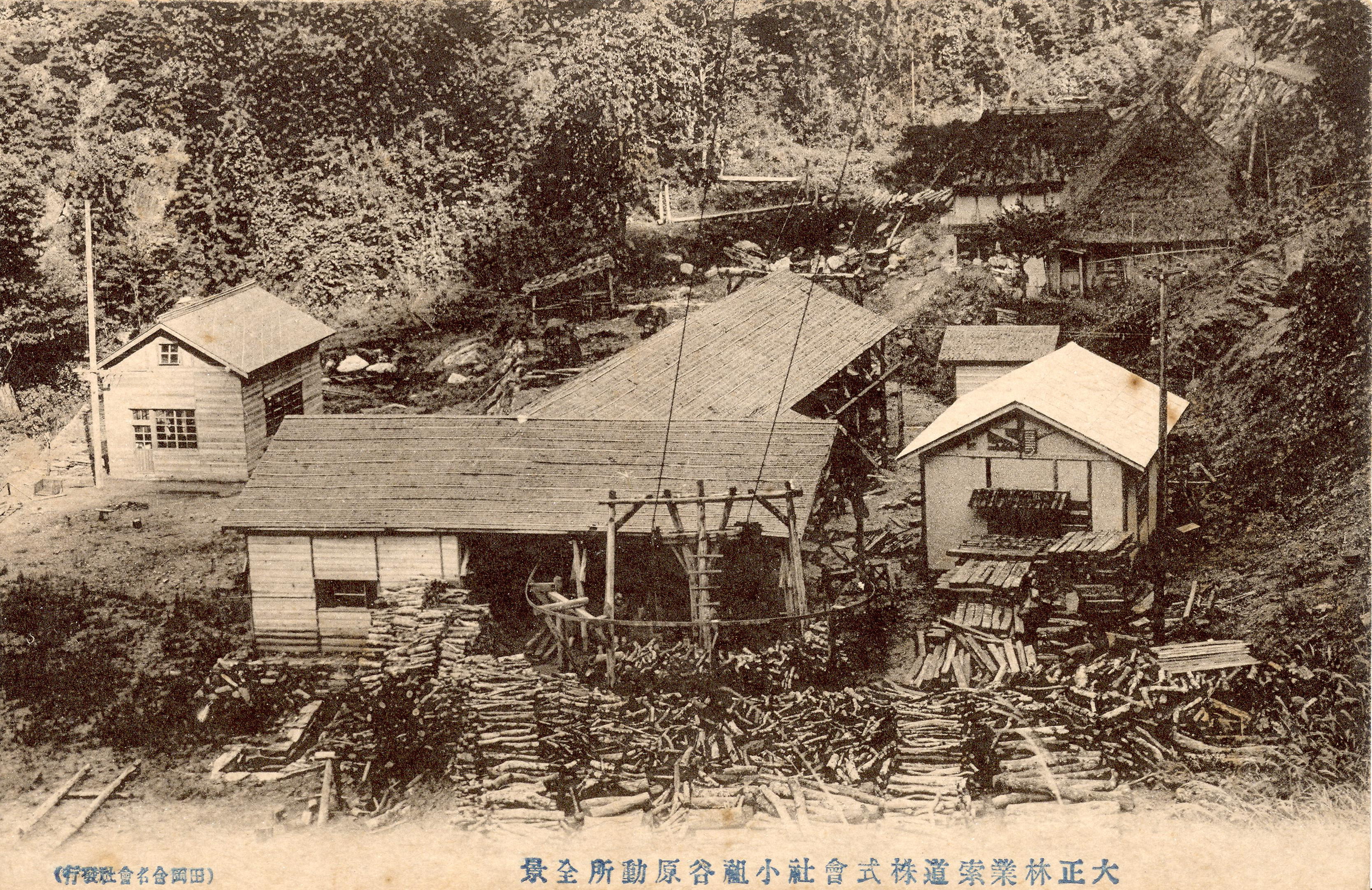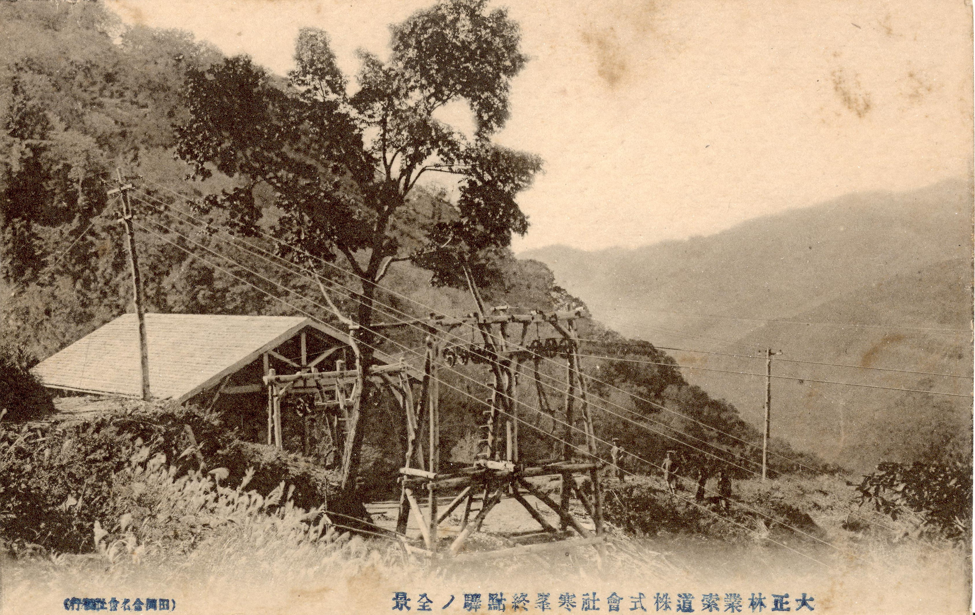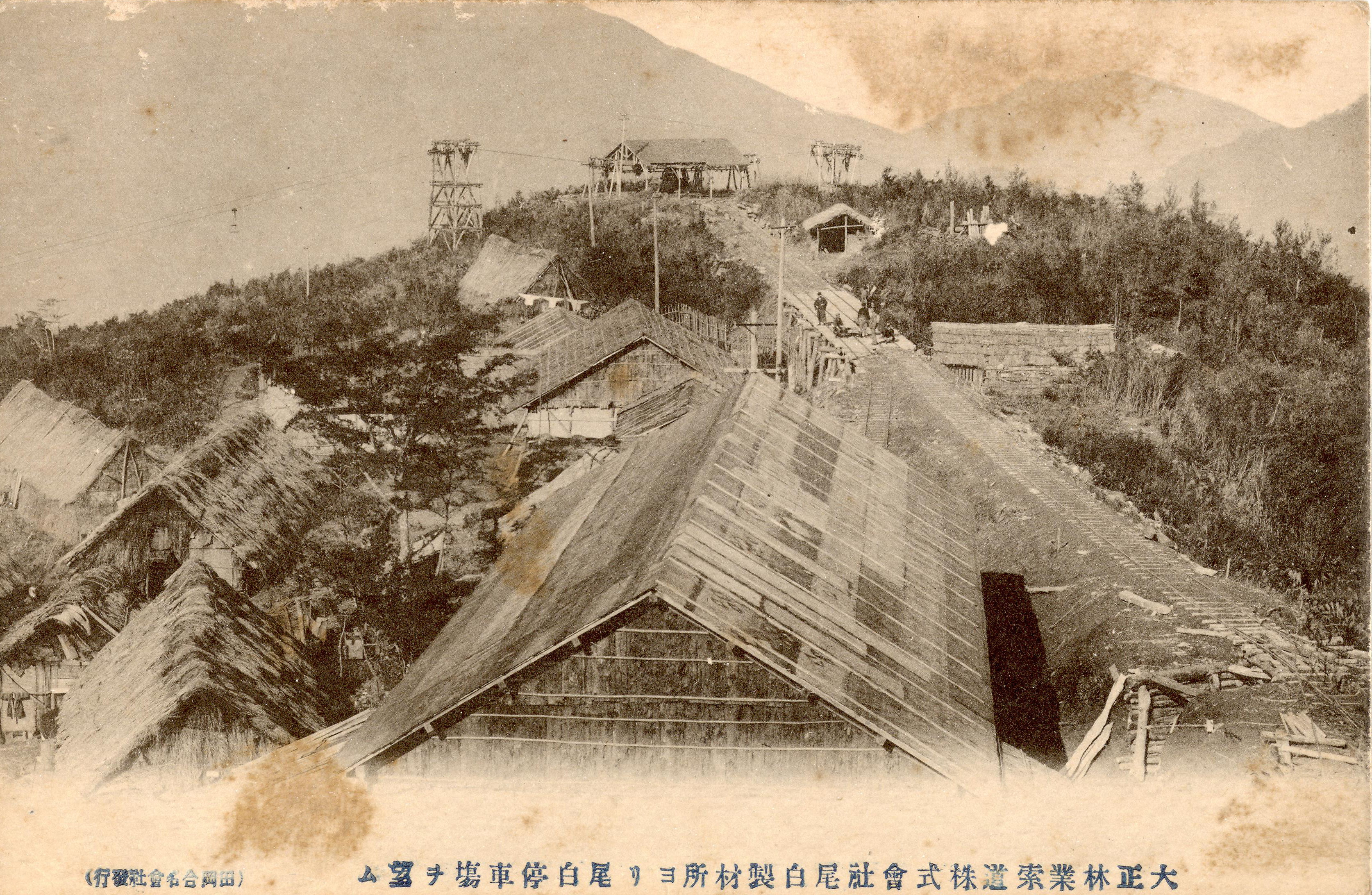 大正林業索道株式会社尾白製材所より尾白停車場を望む