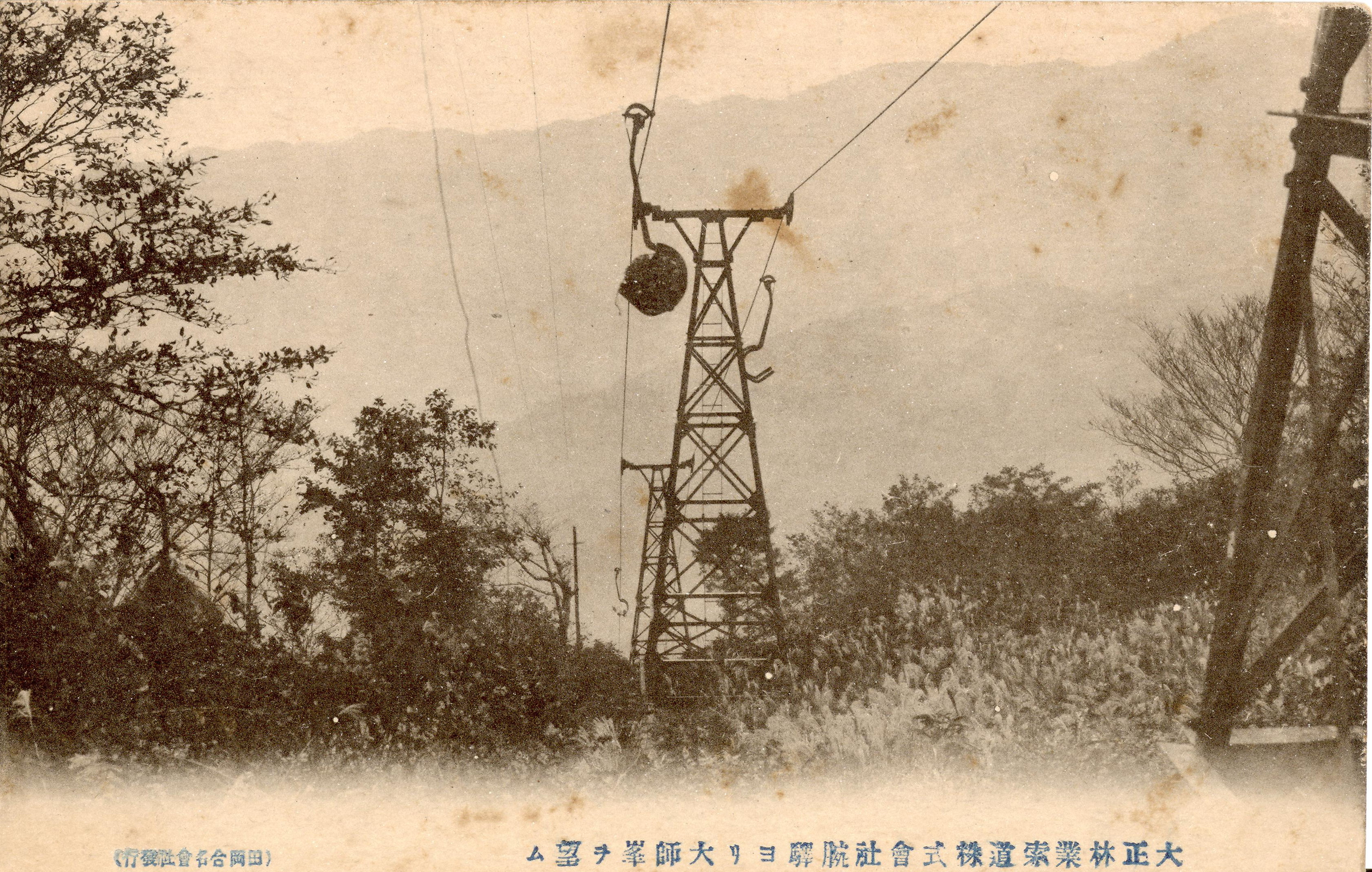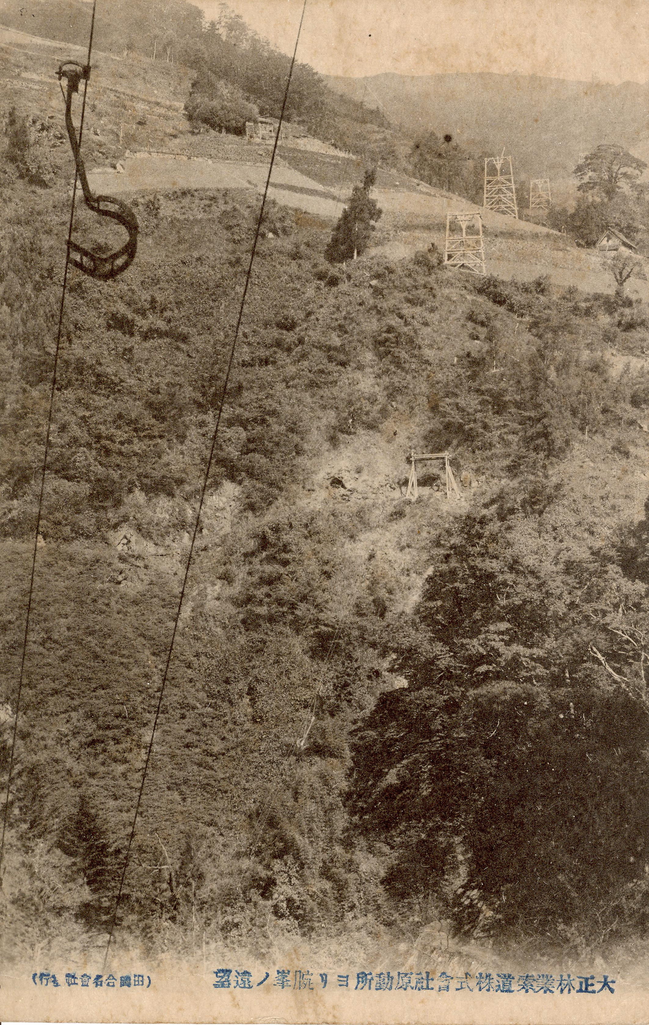 大正林業索道株式会社加茂駅附近百五十尺鉄柱の実況