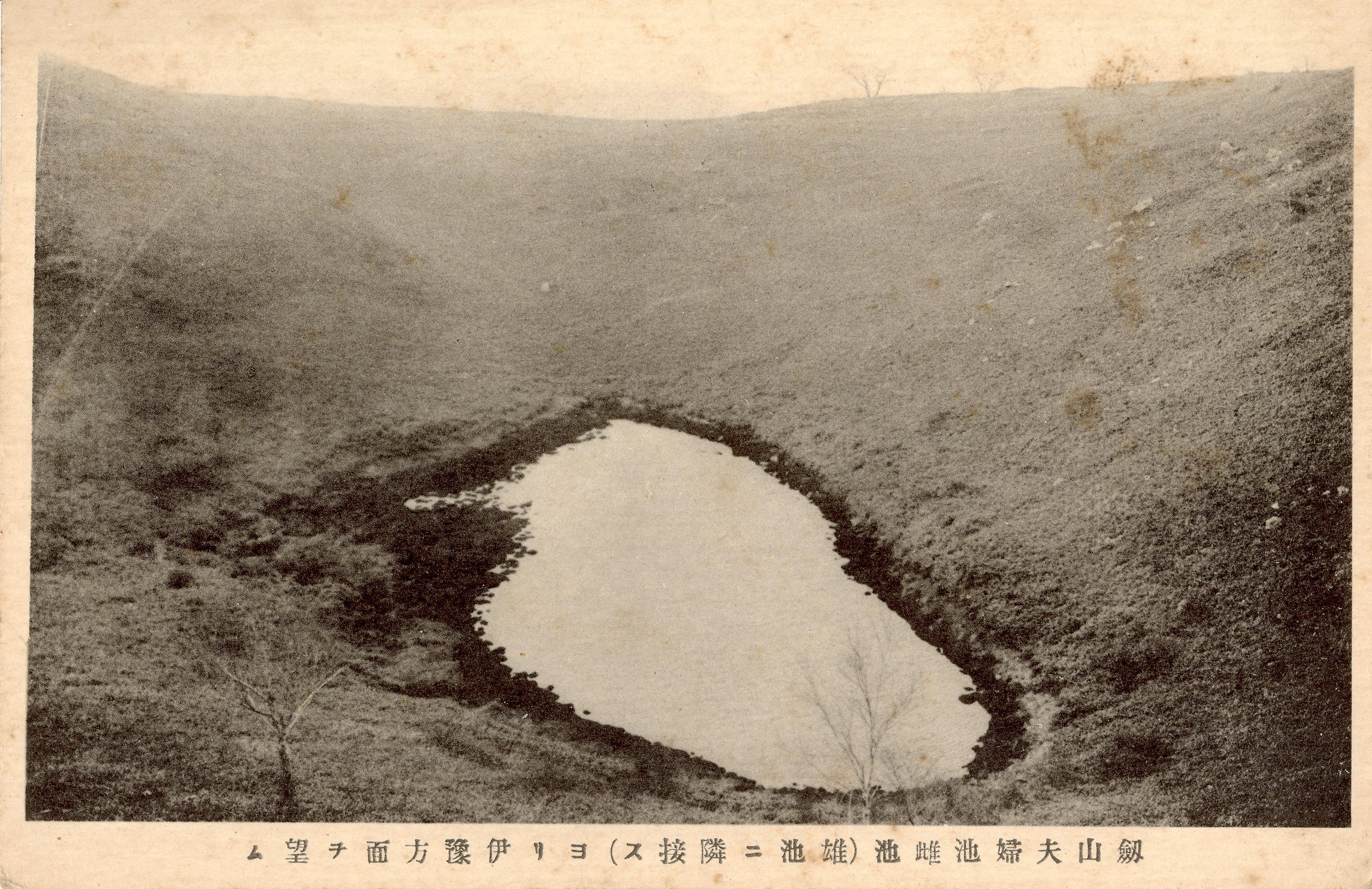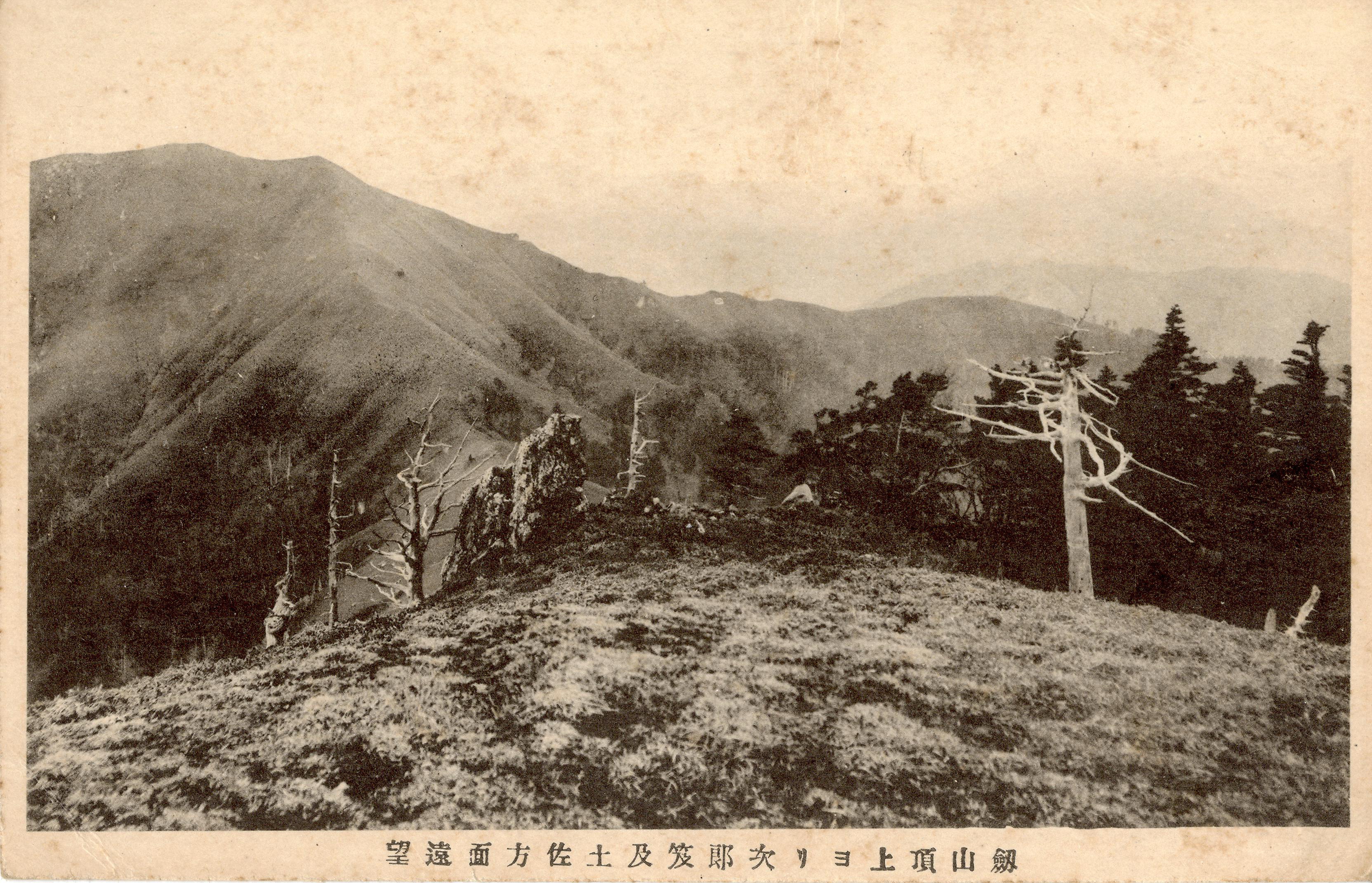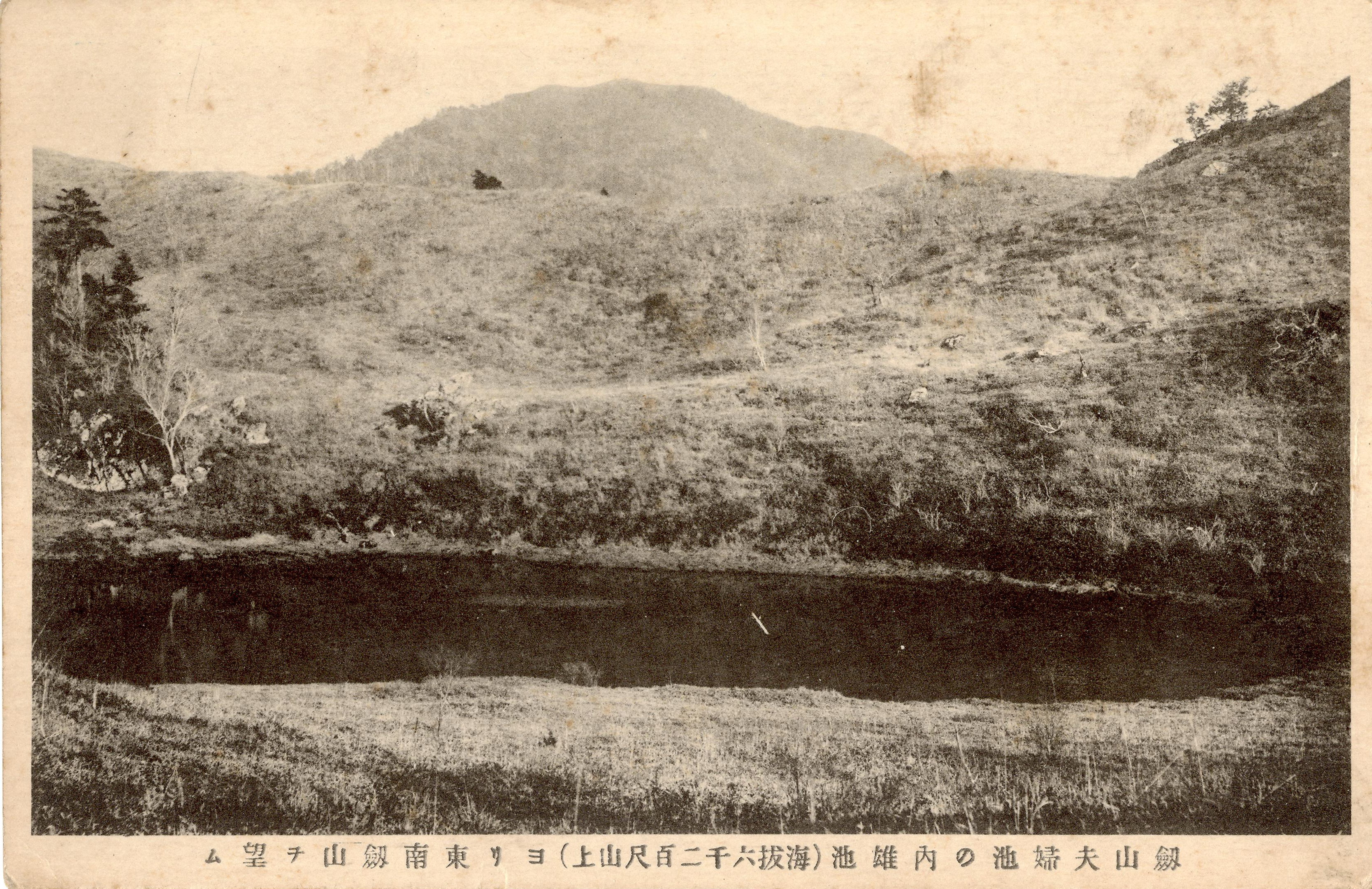 剣山夫婦池の内雄池(海抜六千二百尺山上)より東南剣山を望む