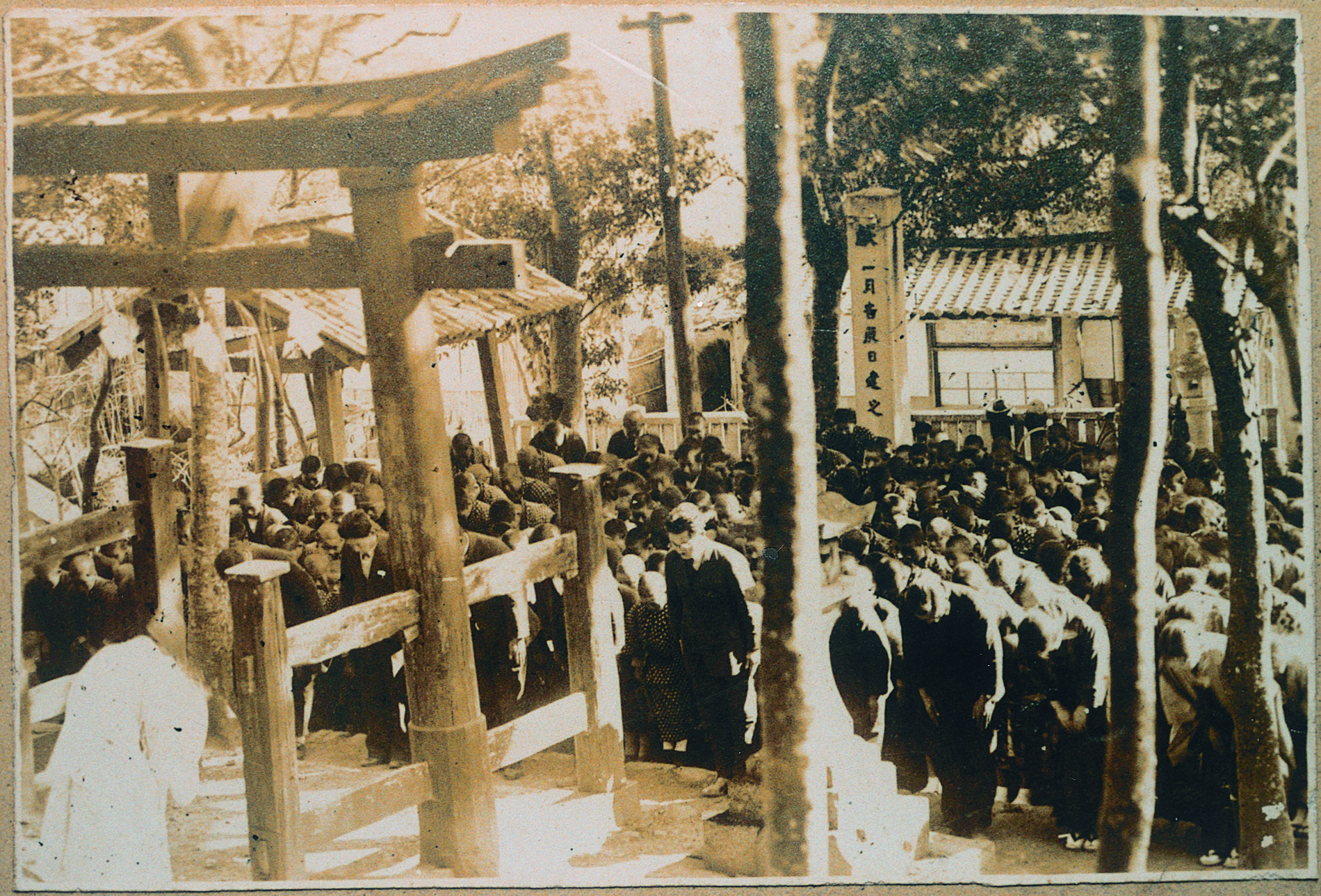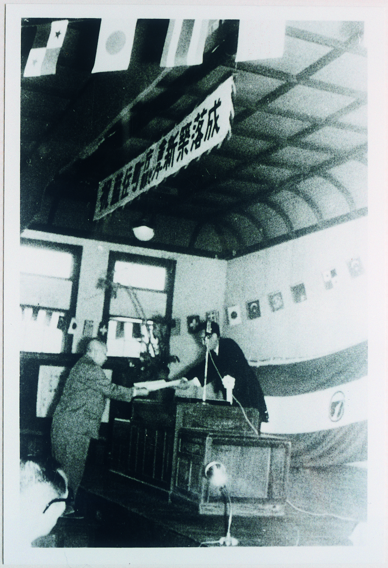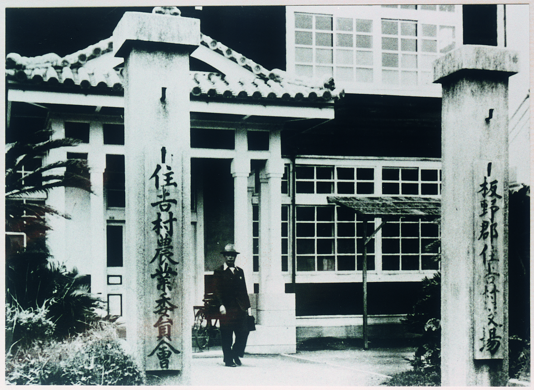 住吉村役場(午後5時、役場で廃村式を終え役場を後にする高橋平次助役)