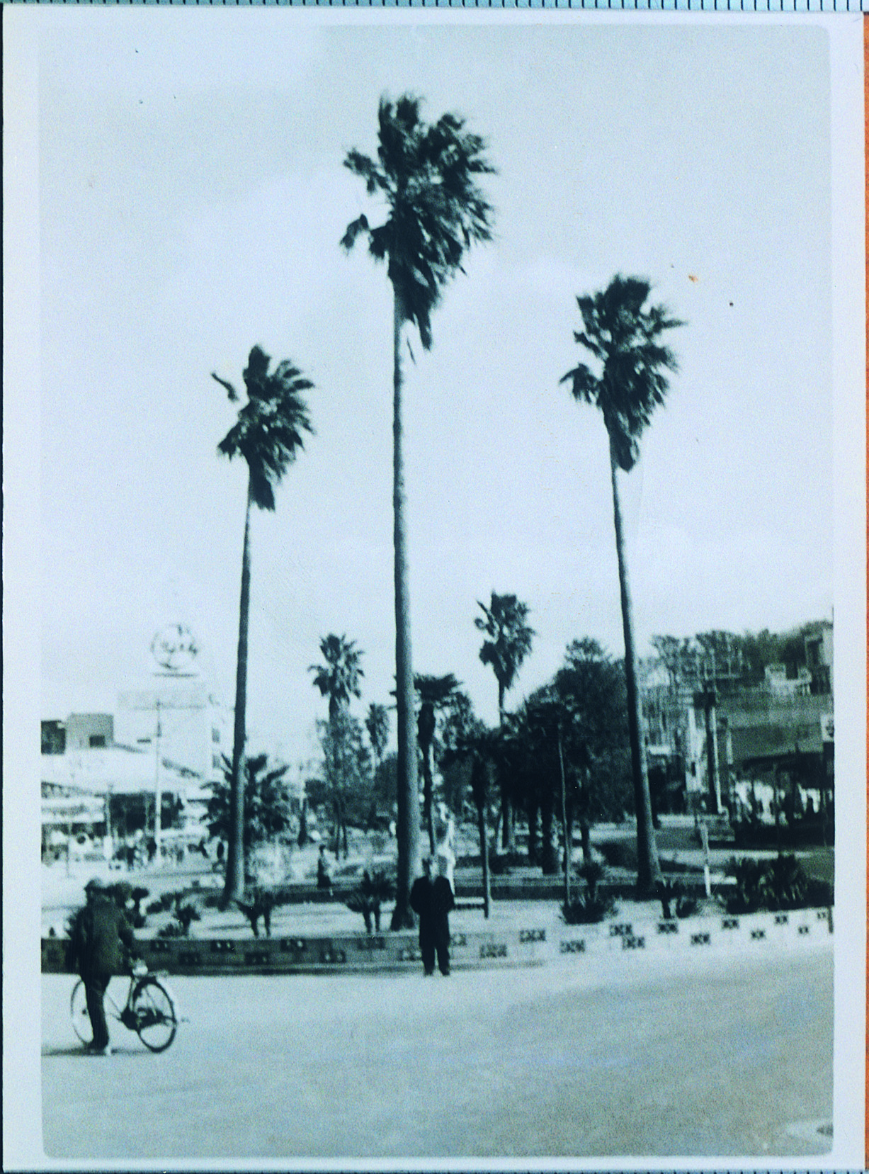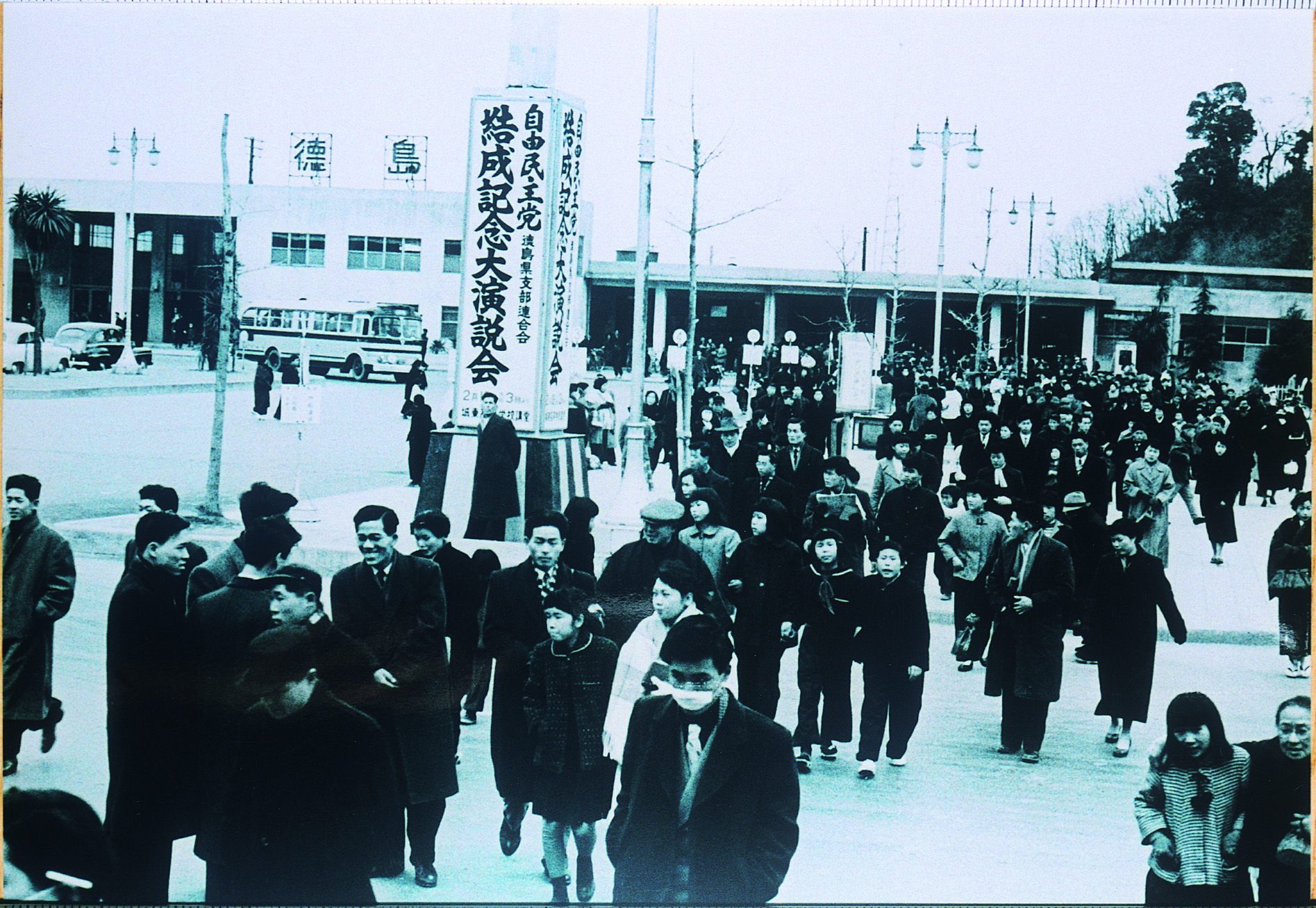 徳島駅前風景(やしの木が昭和28年に県庁から駅前に移植された)