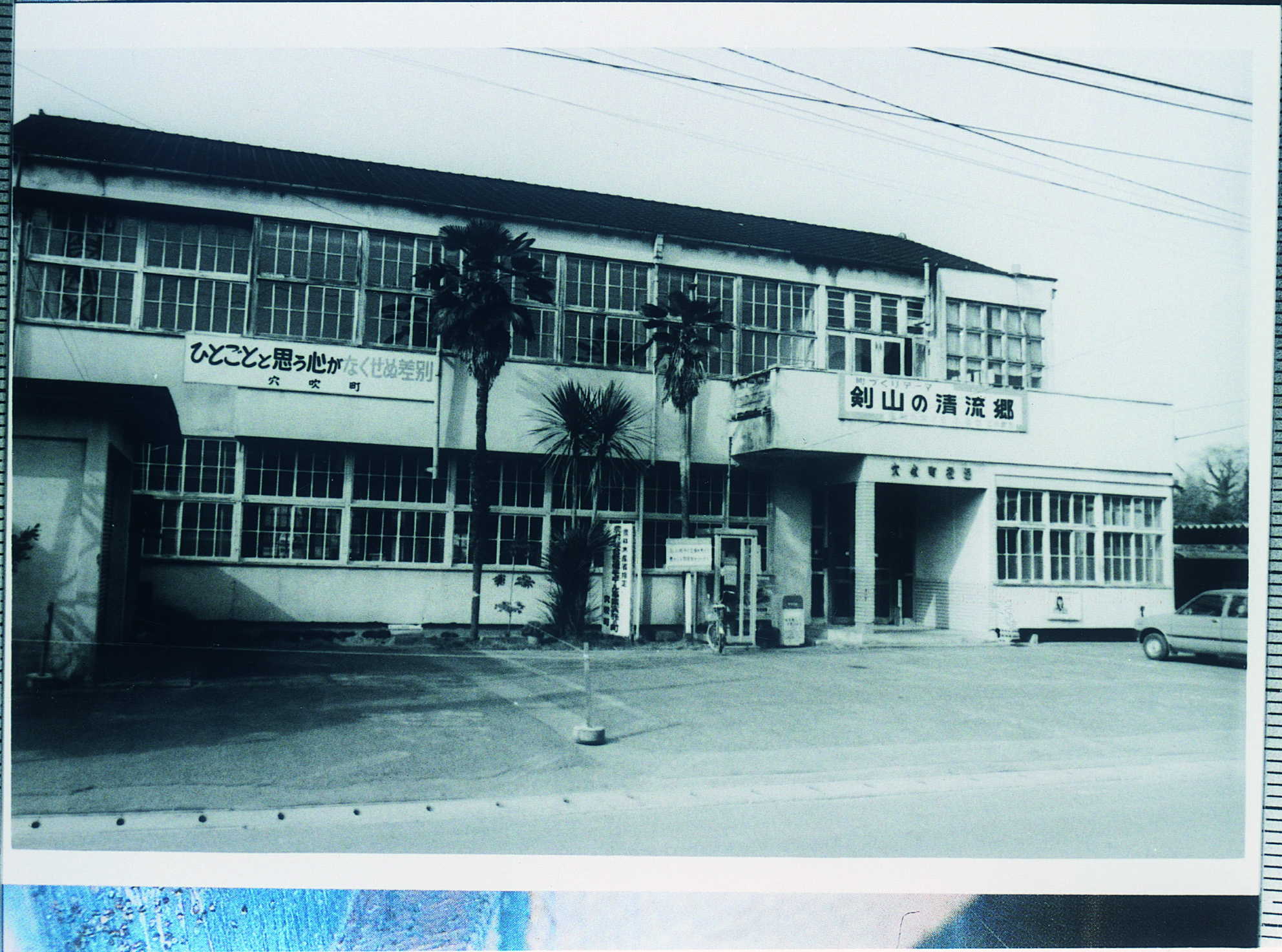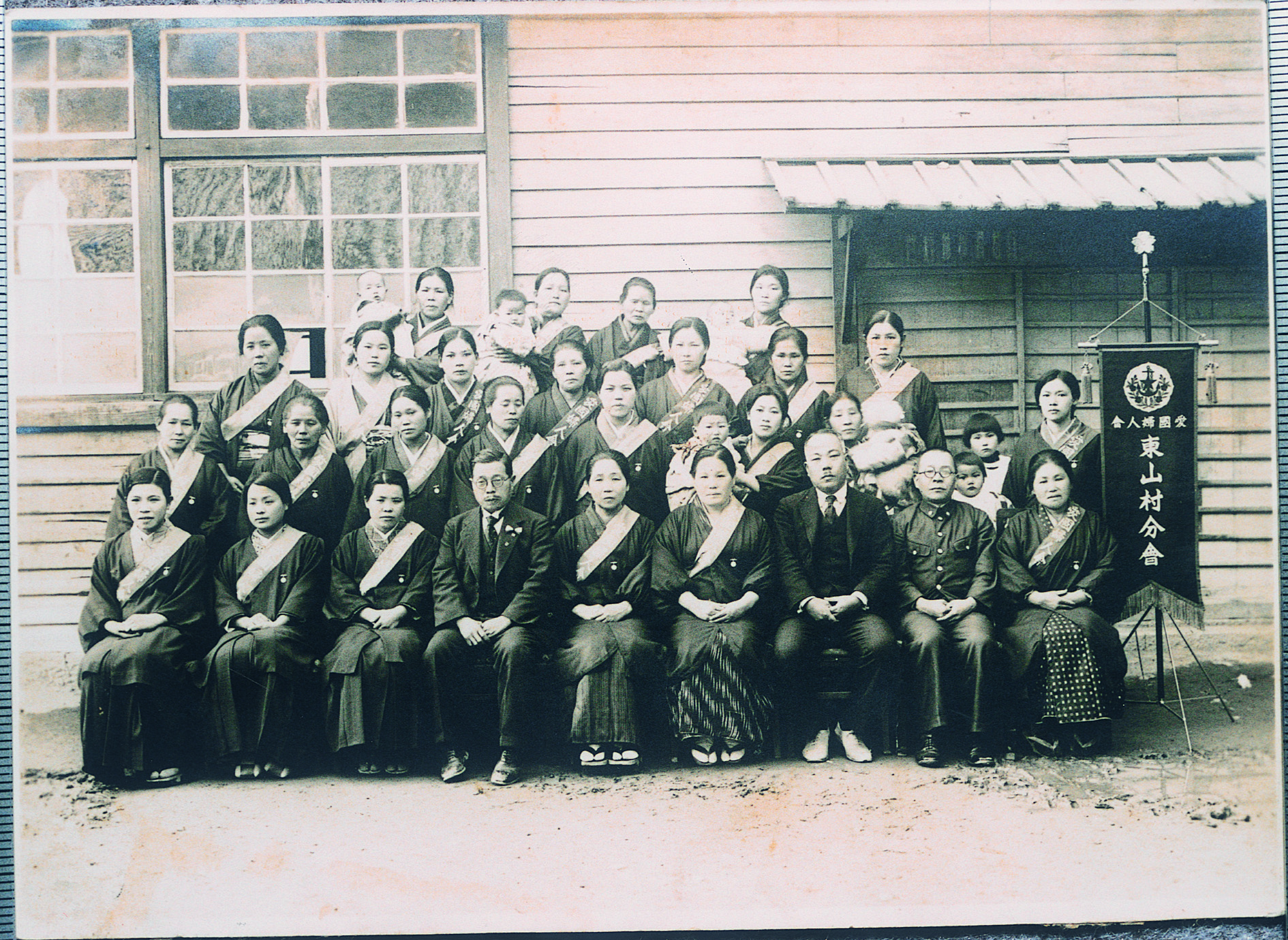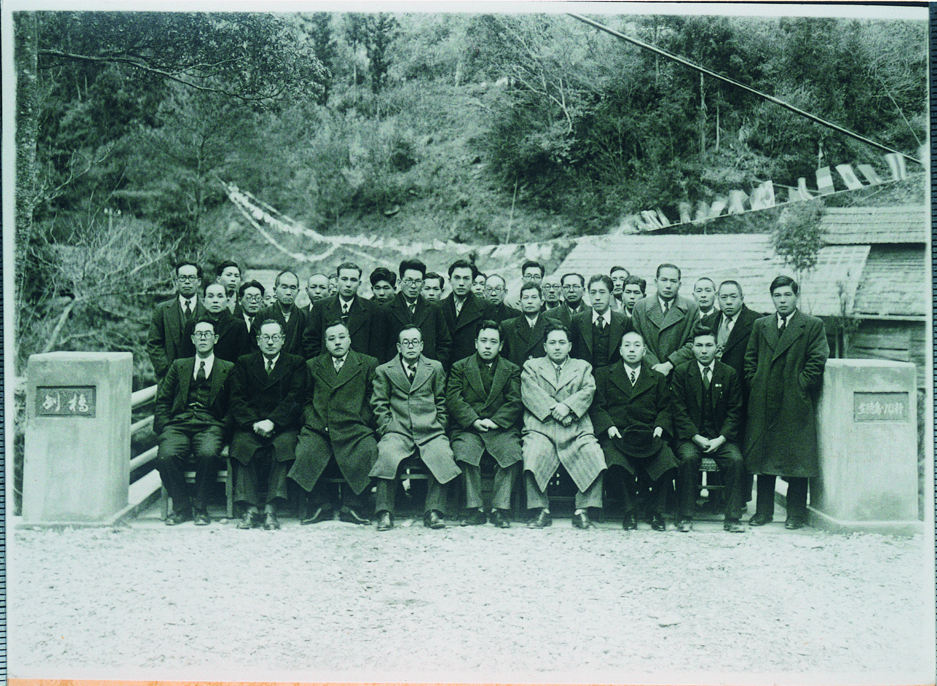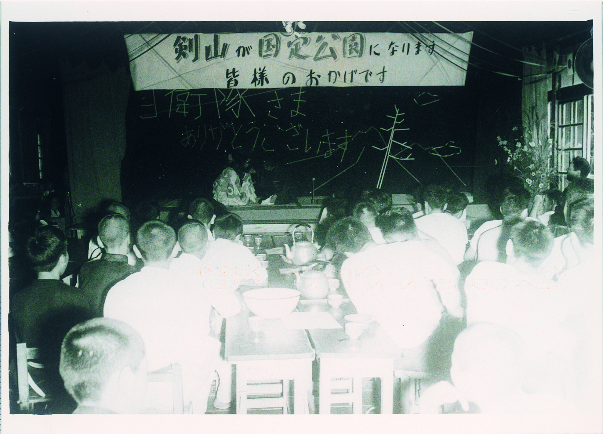 剣山開発道路 宿舎での歓迎式(錦谷小が宿舎として使用された)