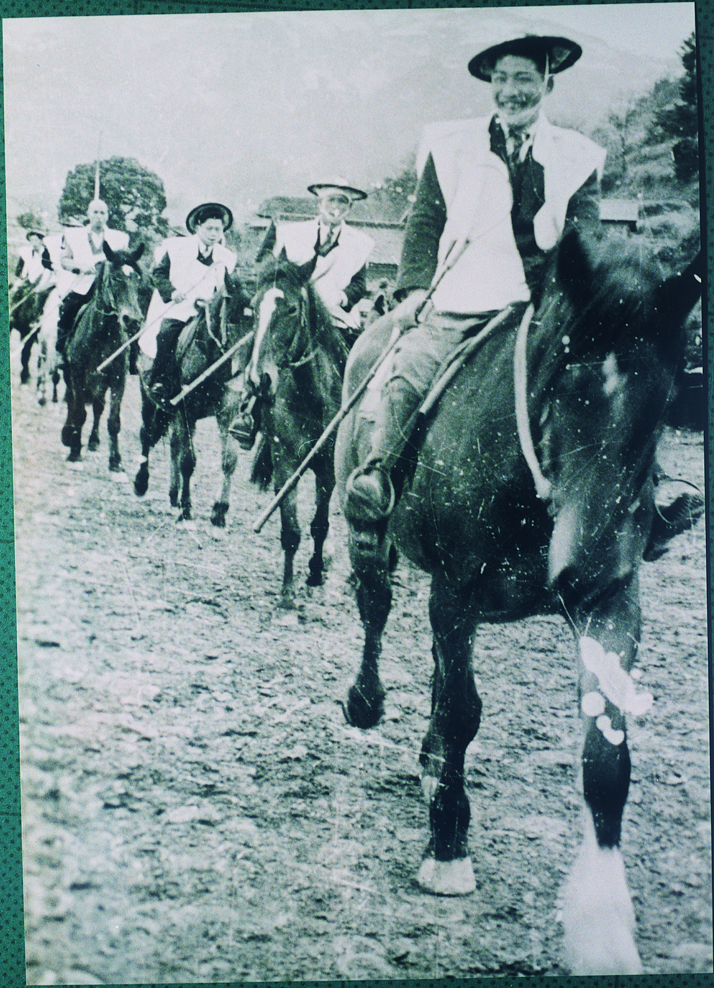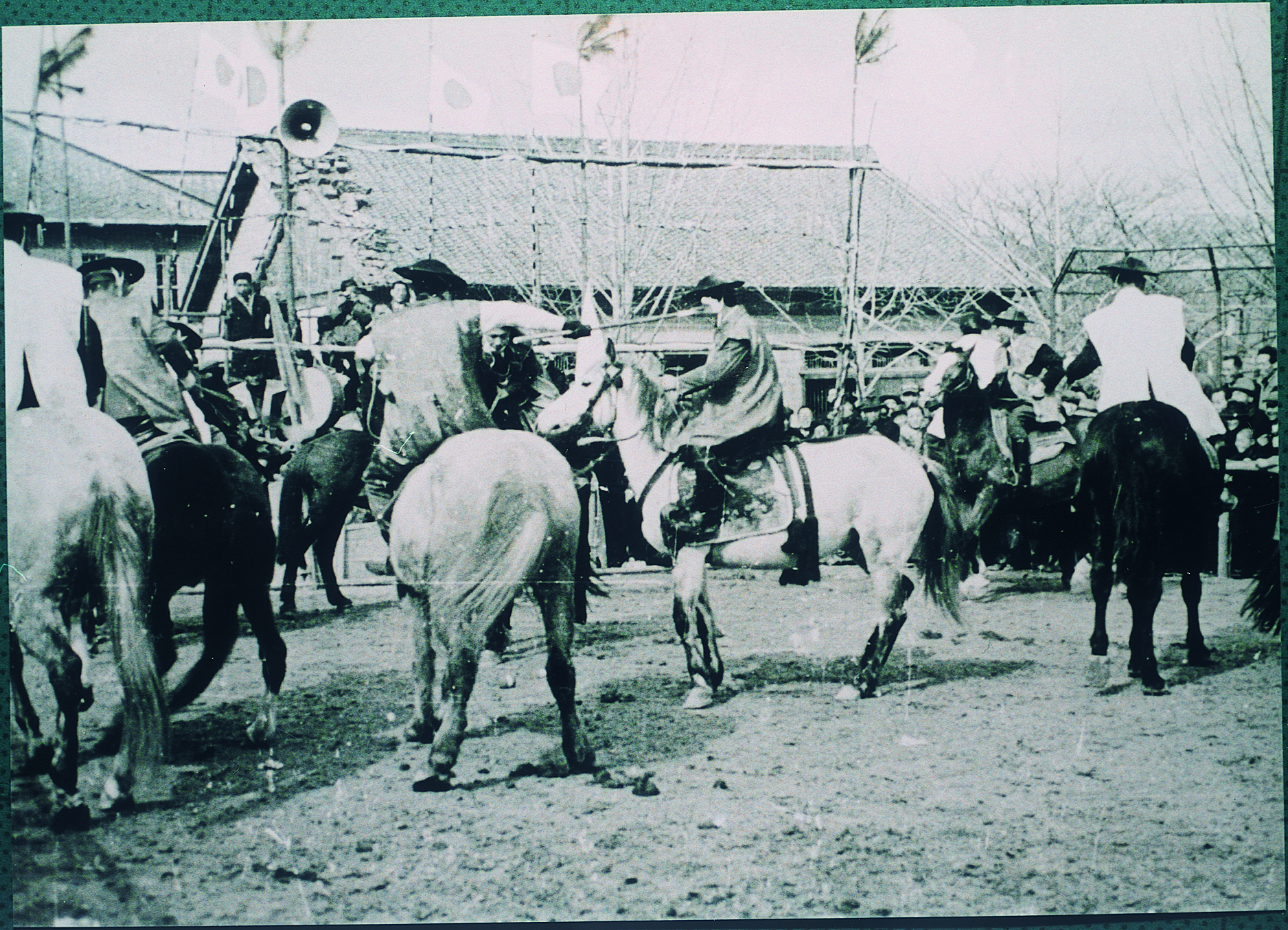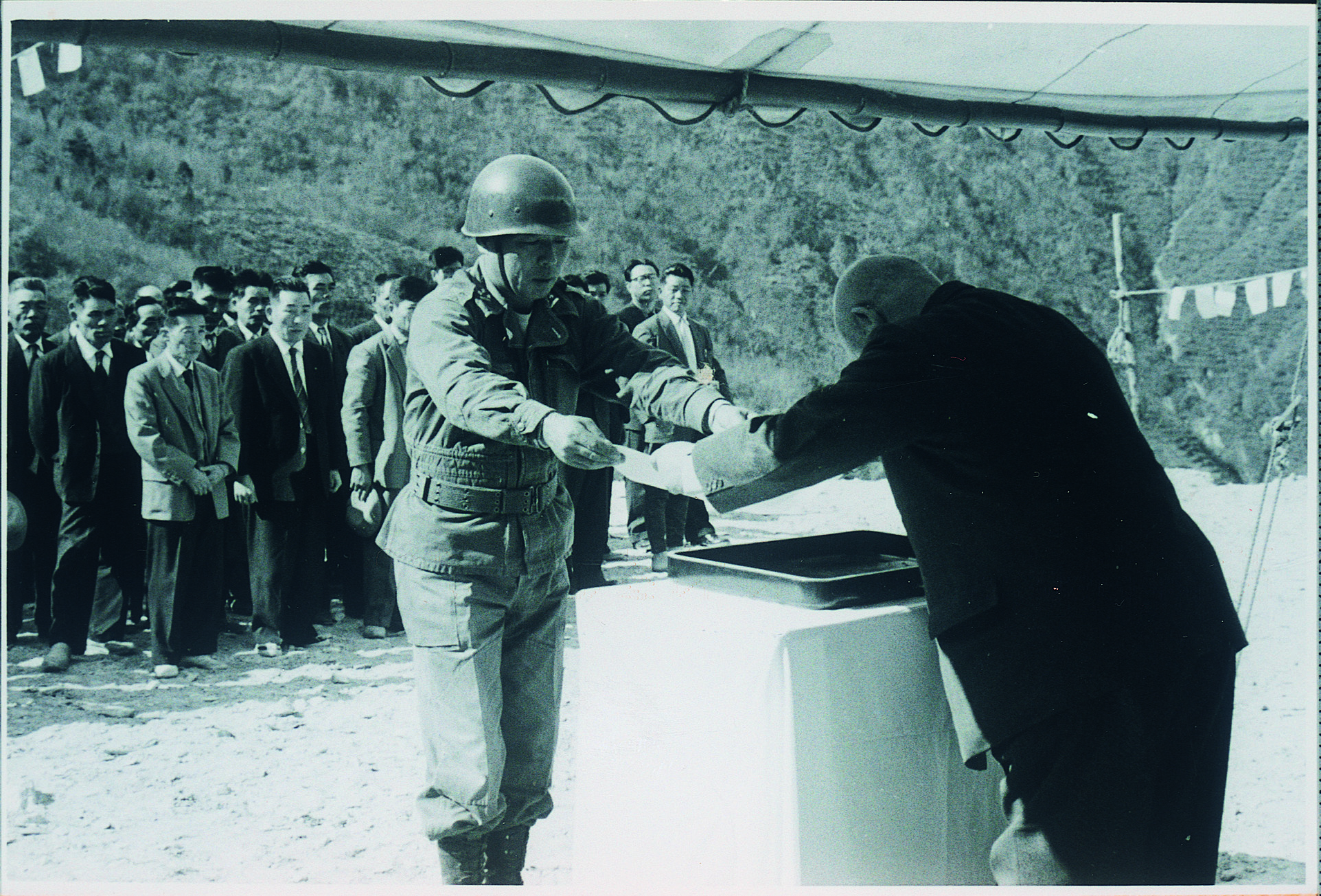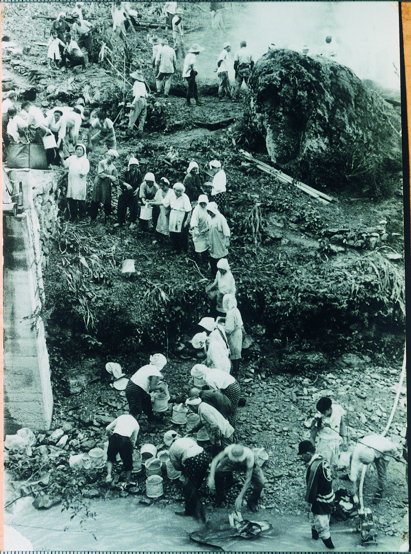 剣山開発道路 宿舎での歓迎式(錦谷小が宿舎として使用された)