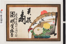 | S0000014121 | 引札絵柄:扇に鶴、菊花商店場所:徳島市当時阿波郡伊沢村寄留 商店名称:那賀梅吉 商売内容:呉服商 | 引き札 |