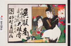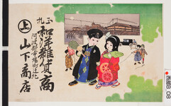 | S0000014126 | 引札絵柄:女性2人 商店場所:阿波郡林村大字西林村 商店名称:平島隆市 商売内容:御羽織地半襟 京都染物大取次 | 引き札 |