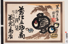 | S0000014159 | 引札絵柄:萬福来集 打ち出の小槌 宝珠 商店場所:阿波郡岩津 商店名称:米倉商店 商売内容:萬仕立物并ニ雑貨商 | 引き札 |
