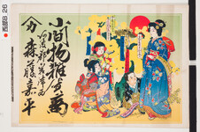 | S0000014163 | 引札絵柄:短冊を飾り付ける母子 商店場所:阿波郡岩津西 商店名称:森藤嘉平 商売内容:小間物雑貨商 | 印刷兼発行者:大阪市東区京橋1丁目29番地 平民古島徳次郎 | 引き札 |