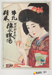 | S0000014166 | 引札絵柄:百人一首の読み札を持つ娘 商店場所:阿波郡市場町 商店名称:住永牧場 商売内容:牛乳精米 | 引き札 |