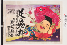| S0000014210 | 引札絵柄:恵比寿・鯛 商店場所:阿波国撫養町 商店名称:小橋商会 商売内容:足袋卸 | 引き札 |