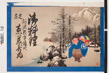 | S0000014226 | 引札絵柄:雪景色の中に恵比寿大黒 商店場所:阿波郡市場町 商店名称:恵美寿丸 商売内容:御料理 | 引き札 |