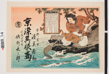 | S0000014251 | 引札絵柄:八岐大蛇? 郵便小包賃金表 商店場所:阿波大寺町 商店名称:佐野元三郎 商売内容:京染呉服商 京都室町 渥美新助 | 引き札 |