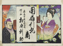 | S0000014158 | 引札絵柄:歌舞伎役者 「遣羽子ややさしき方による贔屓」 商店場所:阿波郡市場町 商店名称:佐藤商店 商売内容:糸綿穀物商 | 引き札 |