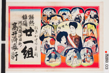 | S0000013848 | 引札絵柄:大礼福(1月から12月迄の福の絵) 商店場所:阿波国池田町 商店名称:高井済衆軒 商売内容:ひきかぜの良剤 解熱鎮痛 21組 | 引き札 |