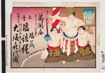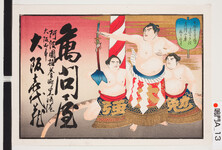 | S0000013893 | 引札絵柄:横綱の後に露払いと太刀持ち 商店場所:阿波国撫養黒崎 商店名称:大阪喜代蔵 商売内容:上等塩結縄 塩菰 | 印刷兼発行:大坂氏東区備後町3丁目27番屋敷 平民 古島竹次郎 | 1902 | 引き札 |
