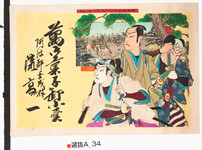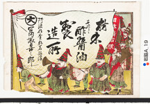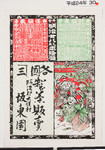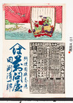 | S0000014042 | 引札絵柄:伊賀越道中双六数馬本望を遂ぐ 荒木又右衛門 商店場所:阿波郡土成村 商店名称:流 高一 商売内容:萬御菓子卸小売 | 引き札 |