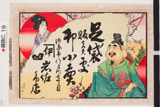 | S0000013797 | 引札絵柄:恵比寿、大黒、弁財天、唐子2人 商店場所:徳島市佐古町 商店名称:岩佐信太郎 商売内容:洋反太物卸商 | 大阪市東区備後町二十七番屋敷 平民古島竹次郎 | 1902 | 引き札 |