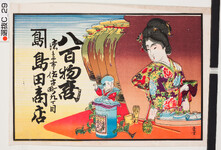 | S0000013909 | 引札絵柄:美人画 商店場所:阿波撫養町 商店名称:今儀商店 商売内容:呉服商 | 引き札 |