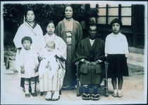 | S0000000421 | 出征記念 庭で家族と | 古写真 |