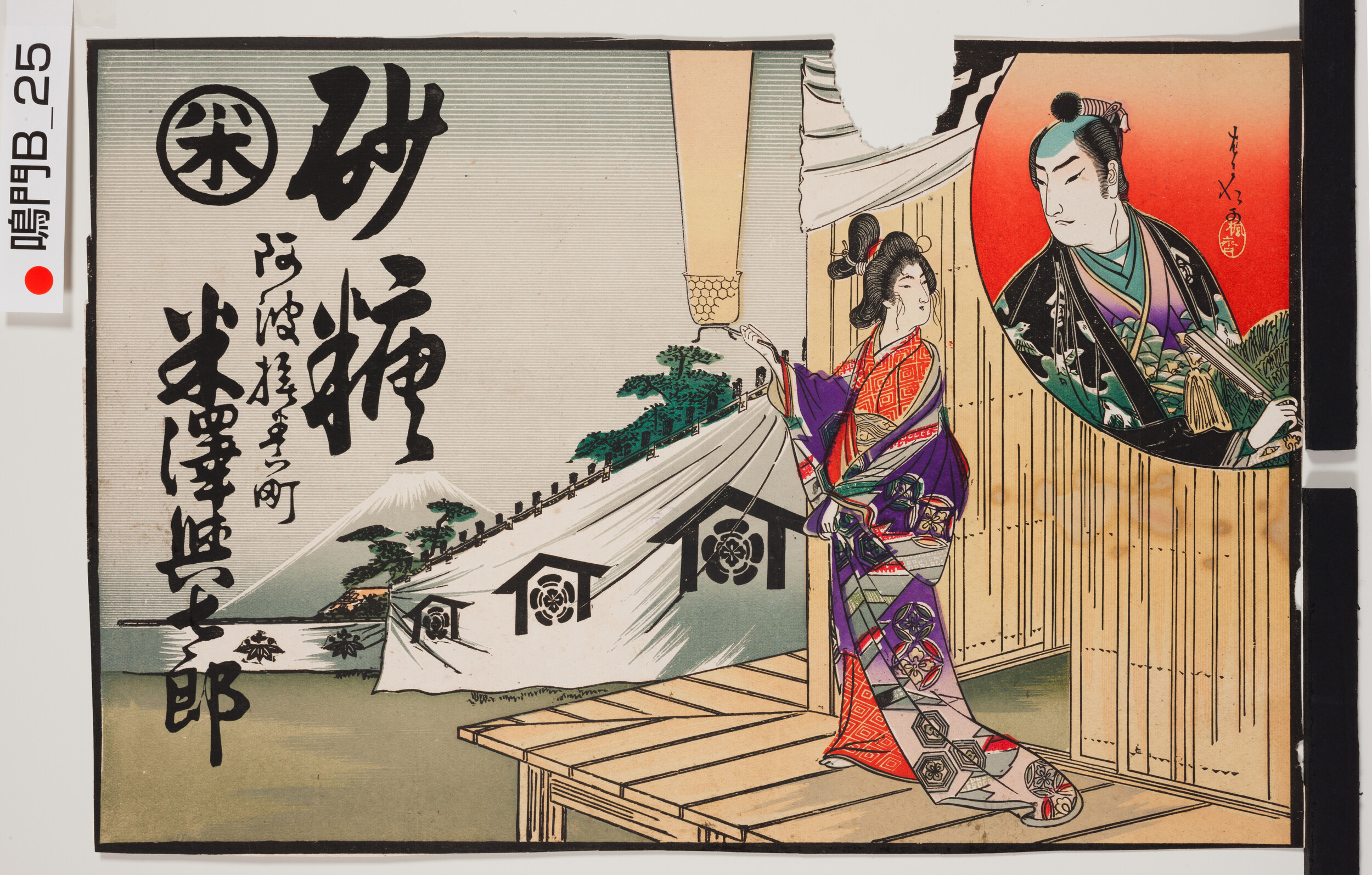 引札絵柄:曾我兄弟 工藤祐経か 商店場所:阿波撫養町 商店名称:米沢興七郎 商売内容:砂糖