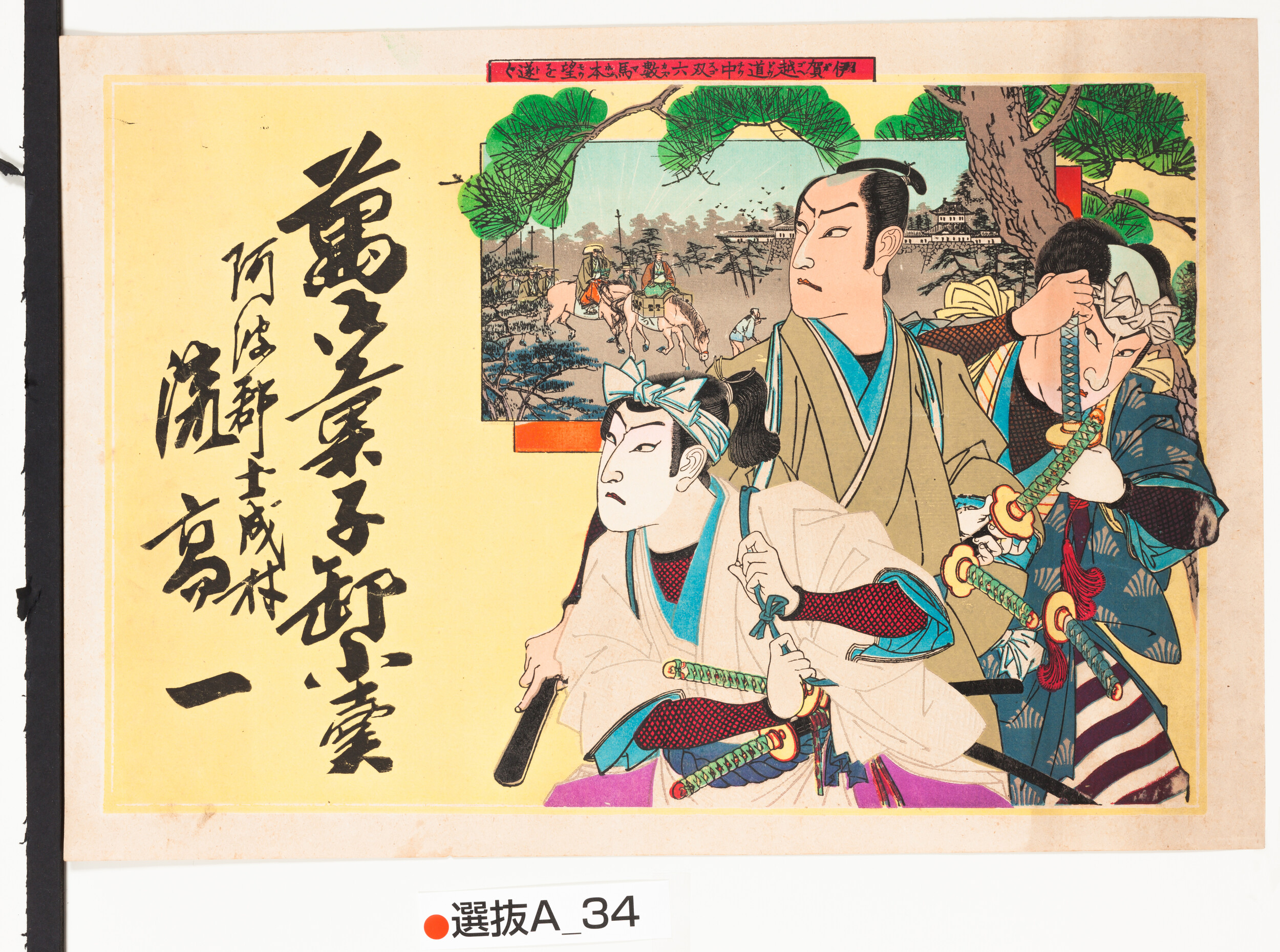 引札絵柄:伊賀越道中双六数馬本望を遂ぐ 荒木又右衛門 商店場所:阿波郡土成村 商店名称:流 高一 商売内容:萬御菓子卸小売